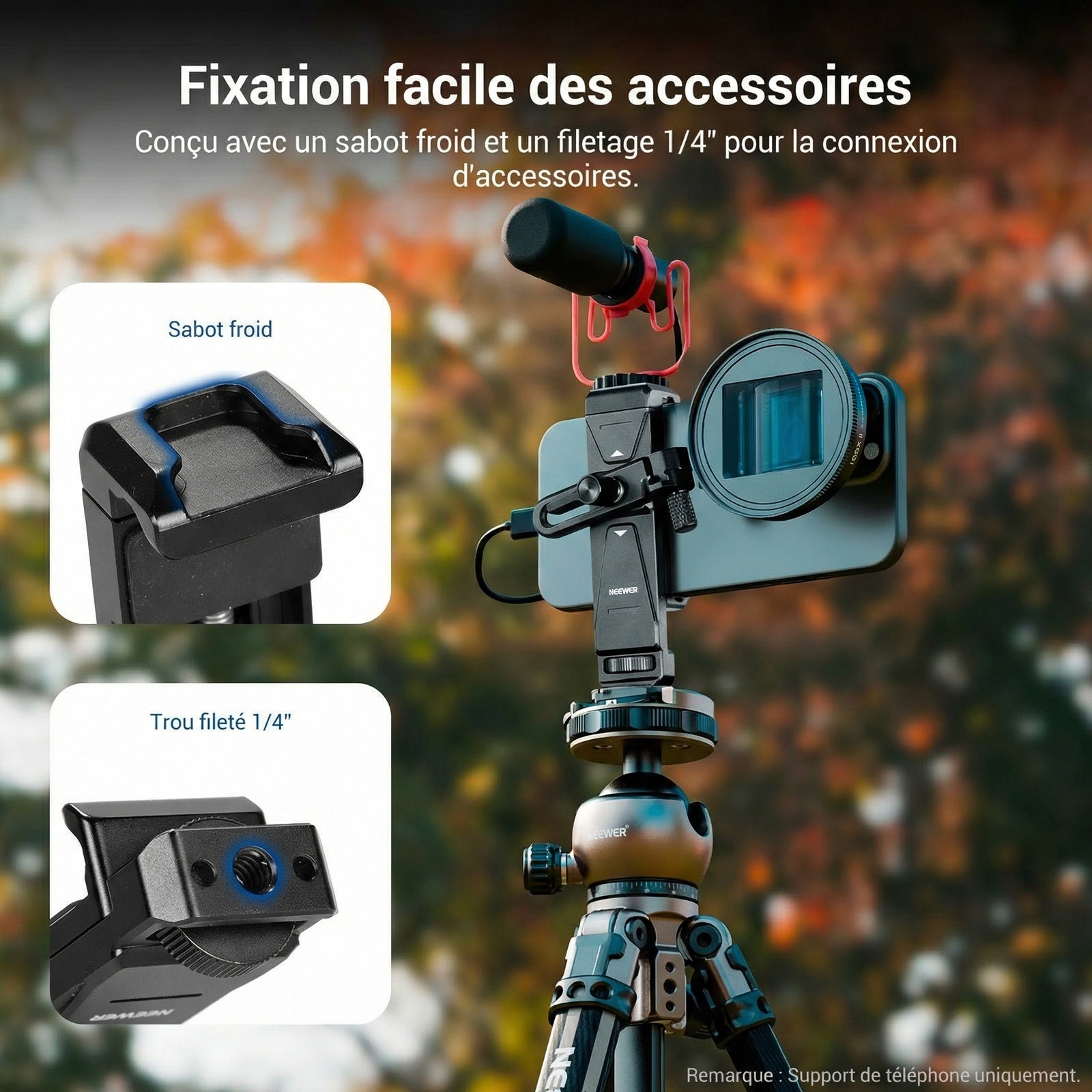 NEEWER GP-3 Support pour téléphone / Kit d'adaptateur pour sabot de flash