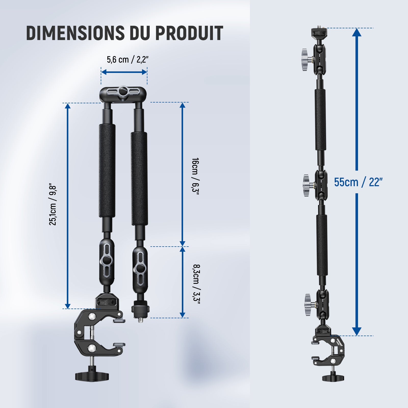 NEEWER UA057 Bras Magique 55cm avec Pince et Support Caméra à Deux Rotules