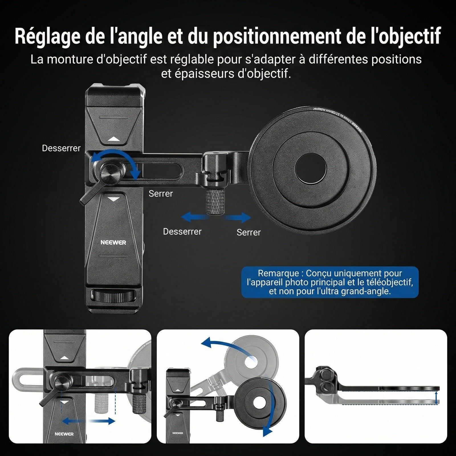- Adaptateur d'objectif de téléphone de 17 mm : convient à tous les objectifs filetés NEEWER de 17 mm (M17 x 1,0) comme un influenceur essentiel pour les créateurs de contenu. Remarque : verres vendus séparément