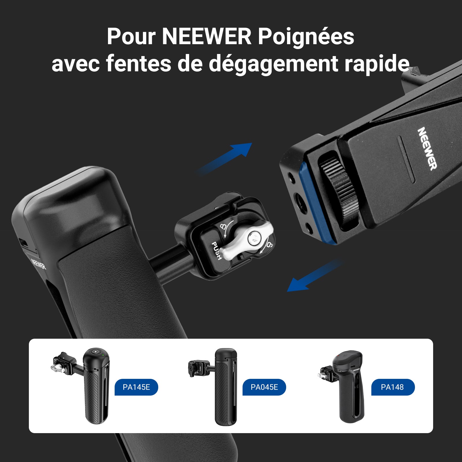 - Plusieurs points de montage : le filetage de 6,35 mm relie le support de téléphone à un trépied ou un support, et le support de griffe fixe des lumières, des micros et d'autres accessoires de photographie. Compatible avec les poignées latérales à dégagement rapide NEEWER
