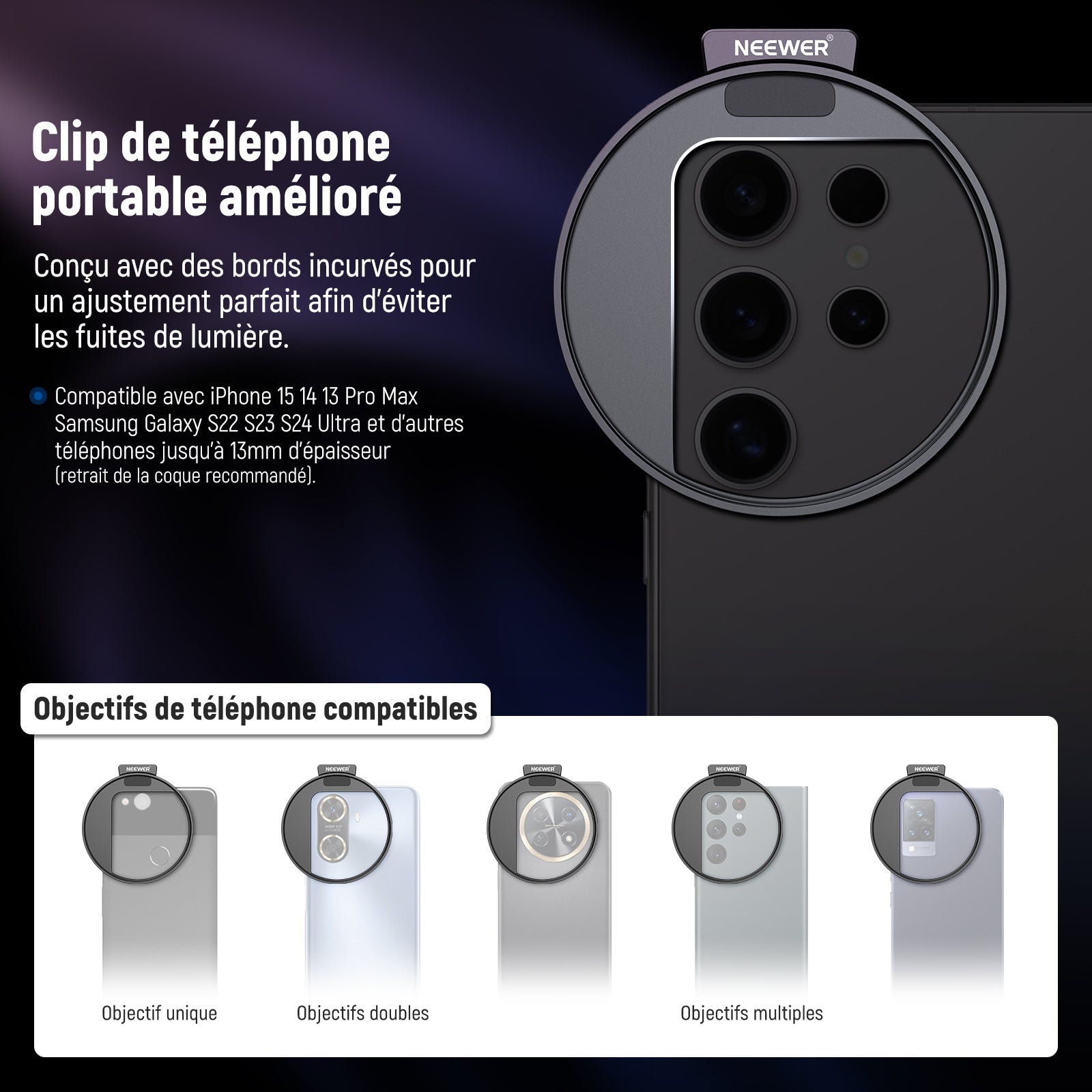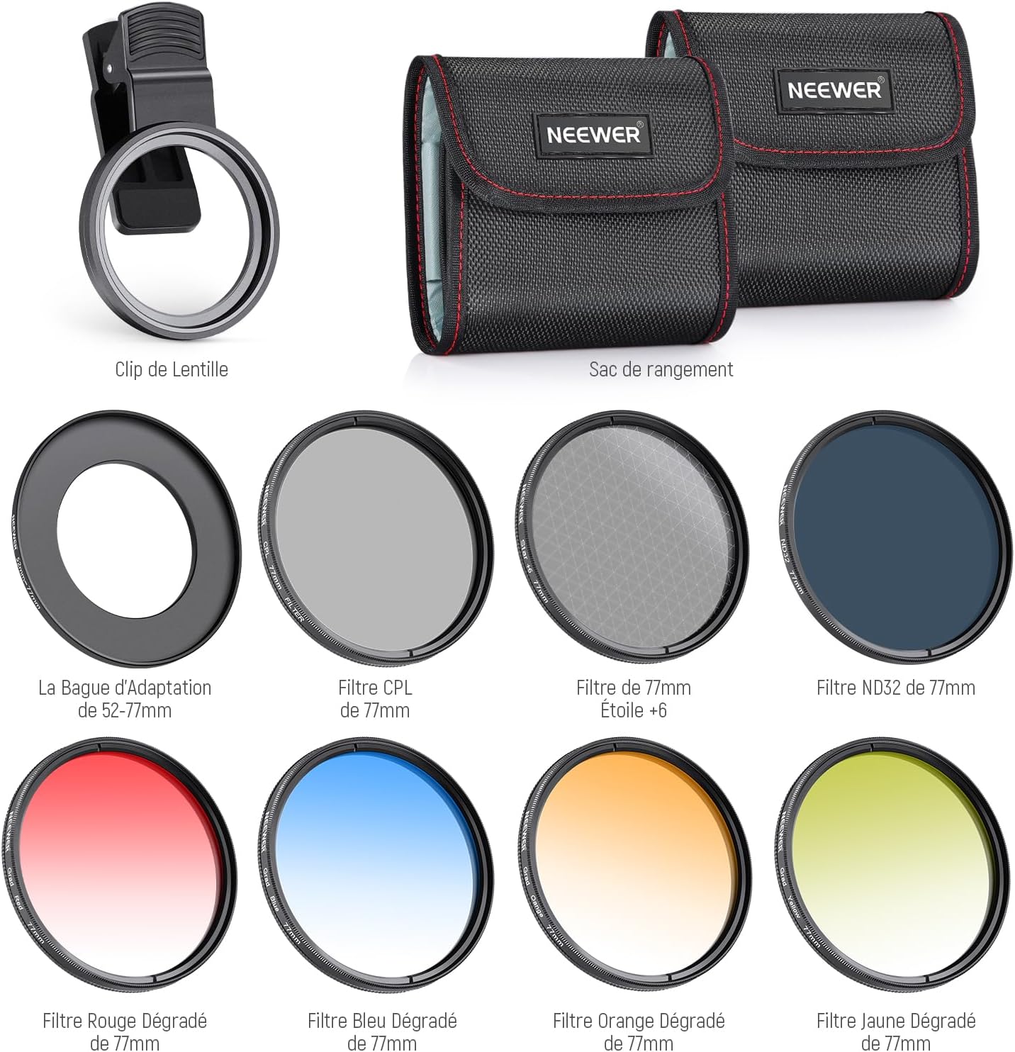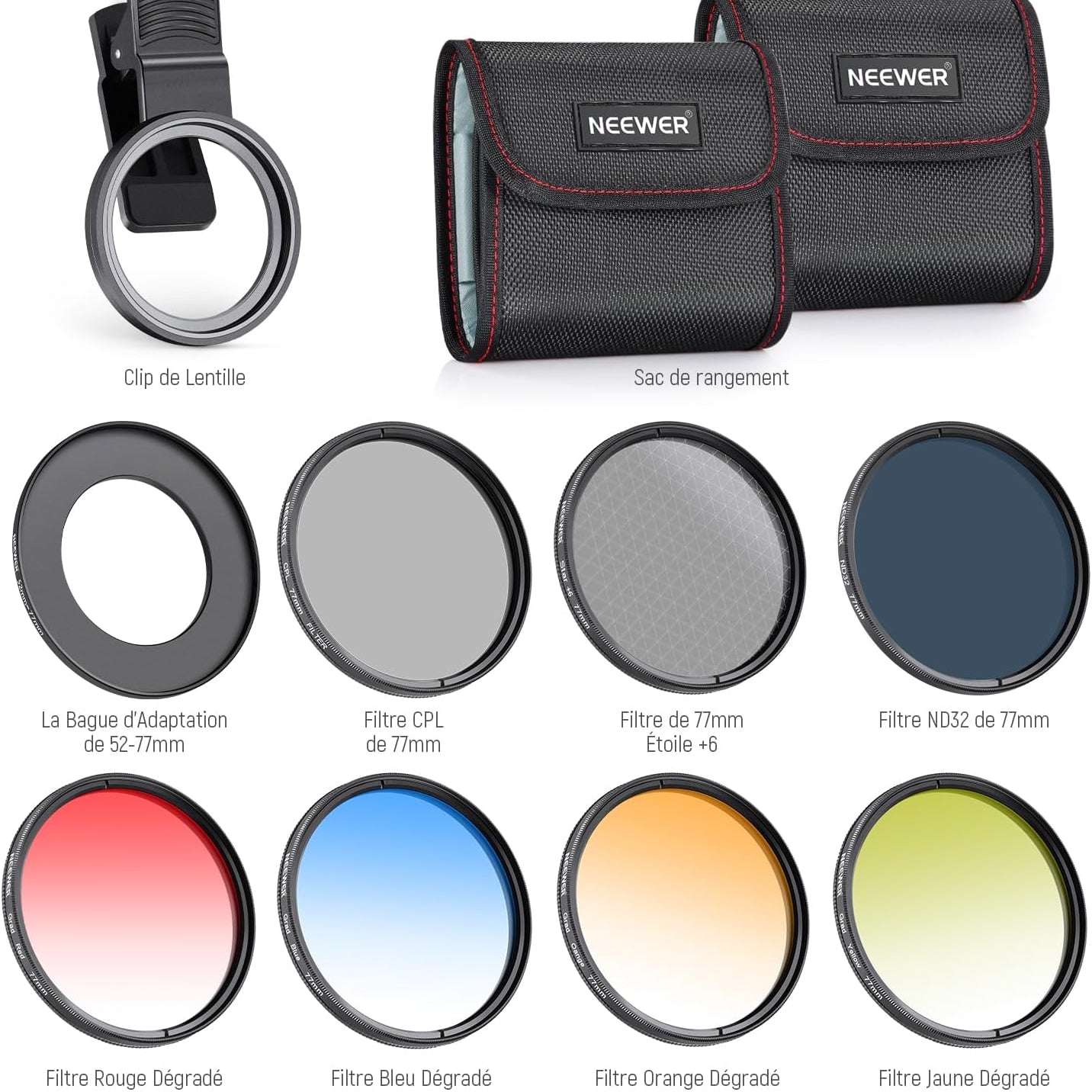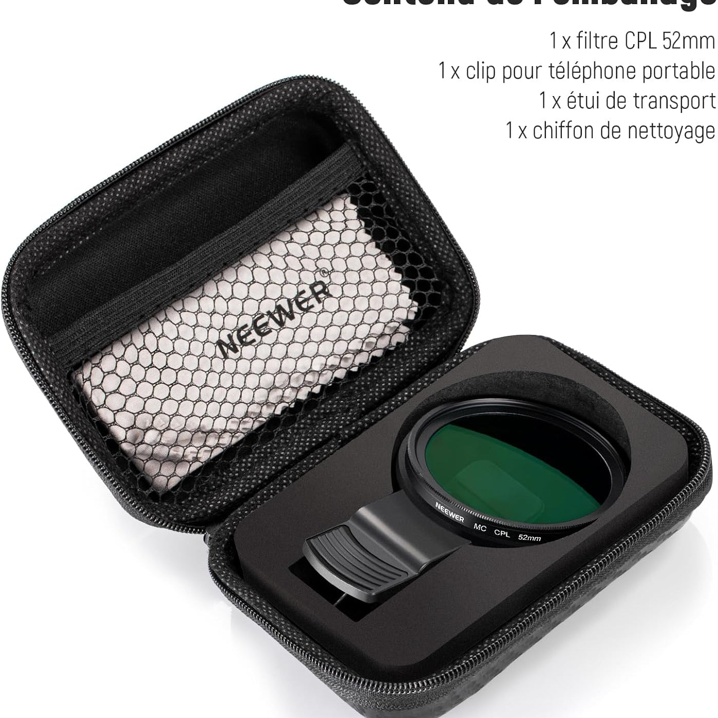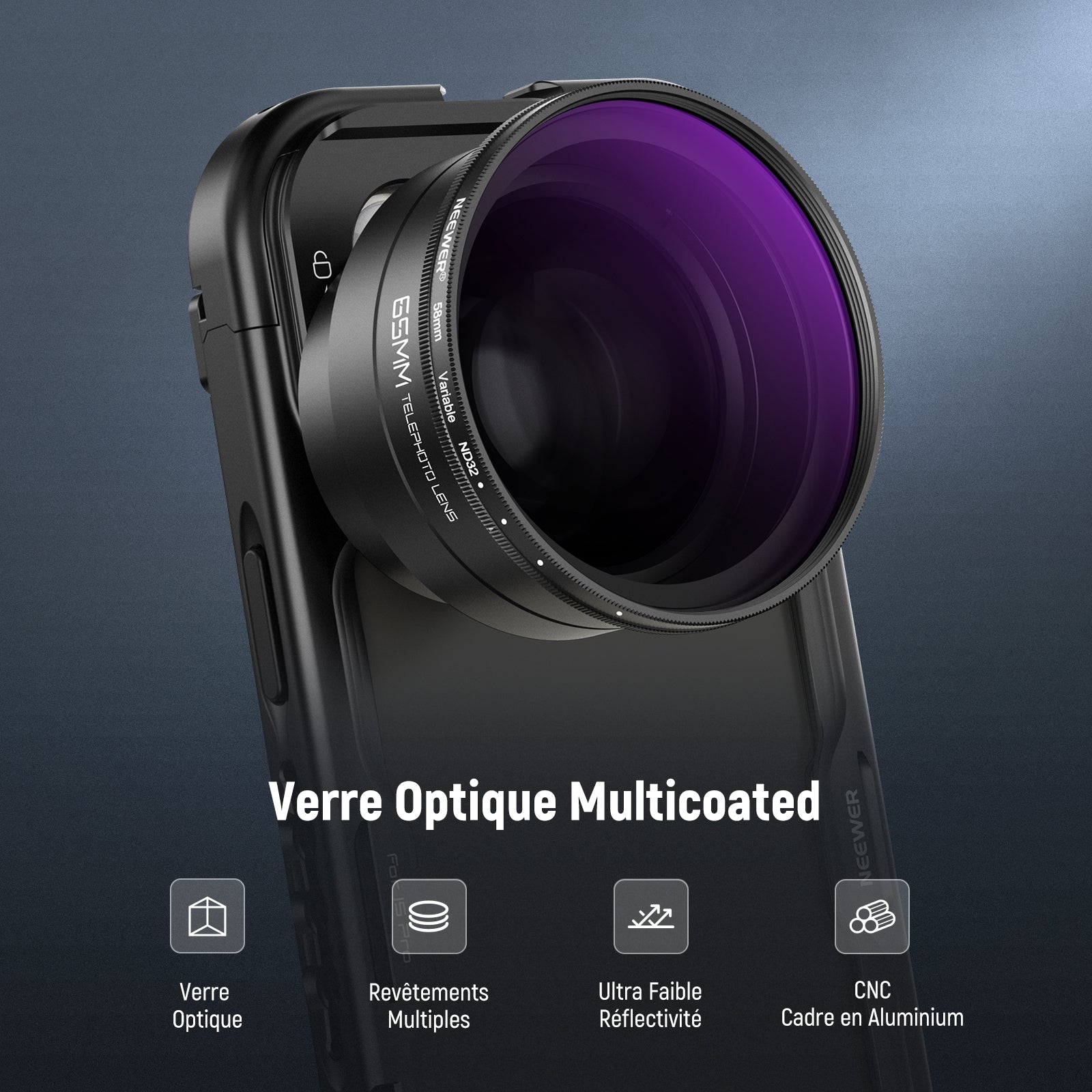 Les objectifs pour téléphone NEEWER sont utiles pour améliorer l'appareil photo de votre smartphone et rehausser votre photographie mobile. Notre collection comprend une variété d'objectifs, tels que des objectifs macro, téléobjectifs, microscopiques et fisheye. Ces objectifs sont parfaits pour la photographie de rue, de paysage, d'architecture et de groupe. Choisissez des objectifs de haute qualité pour votre appareil photo de téléphone afin de prendre des photos époustouflantes.