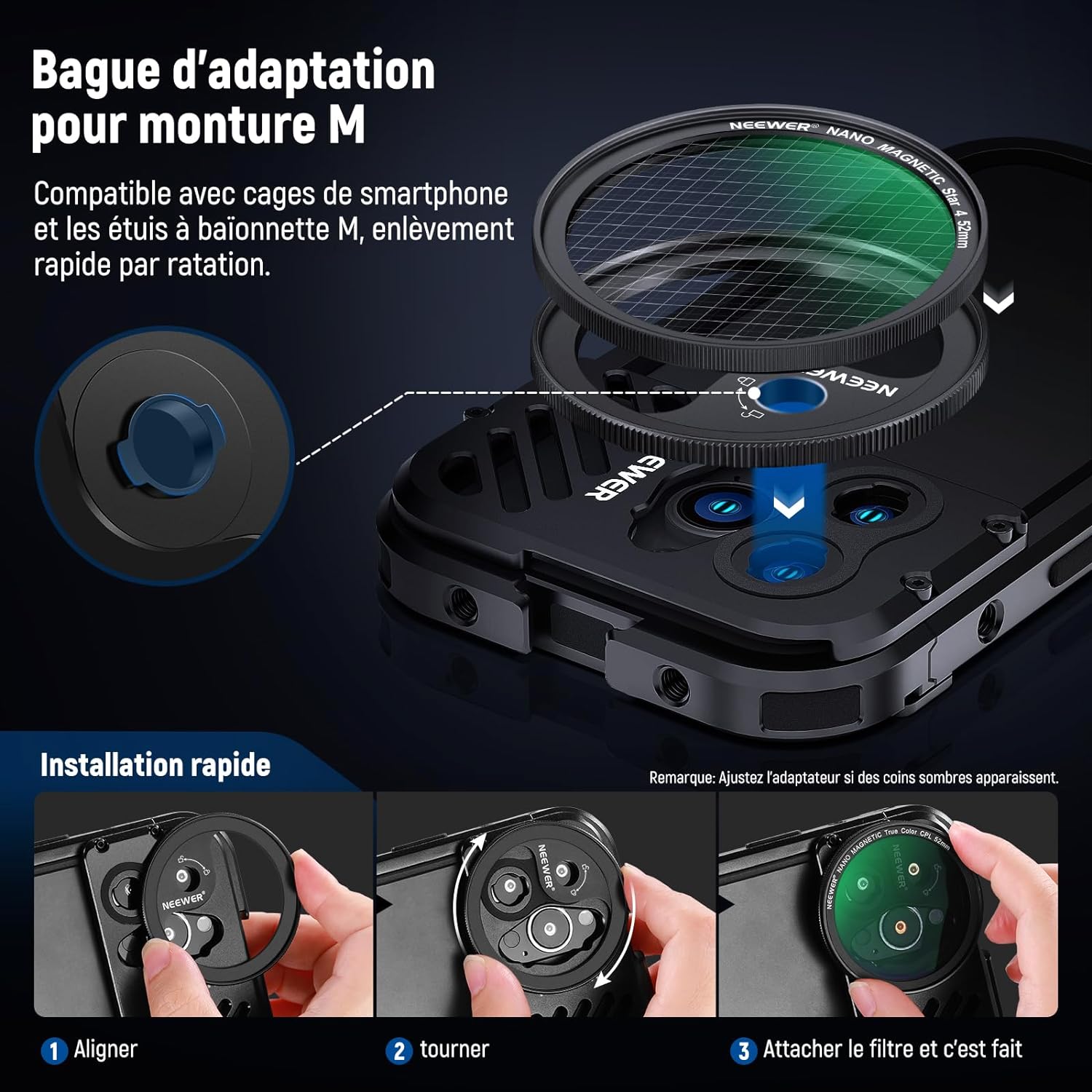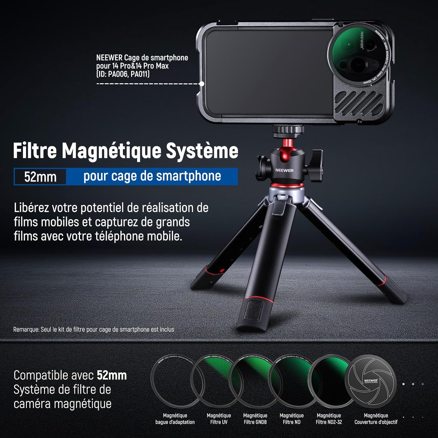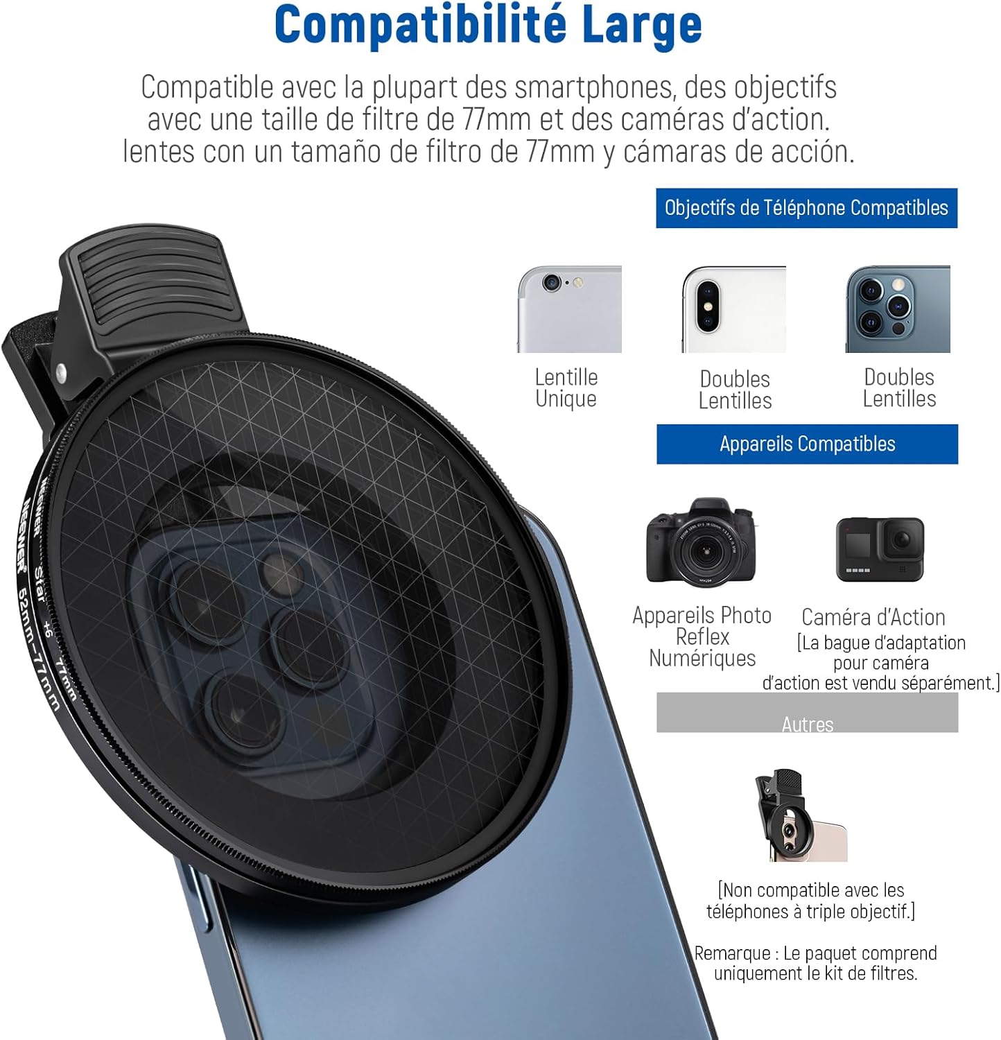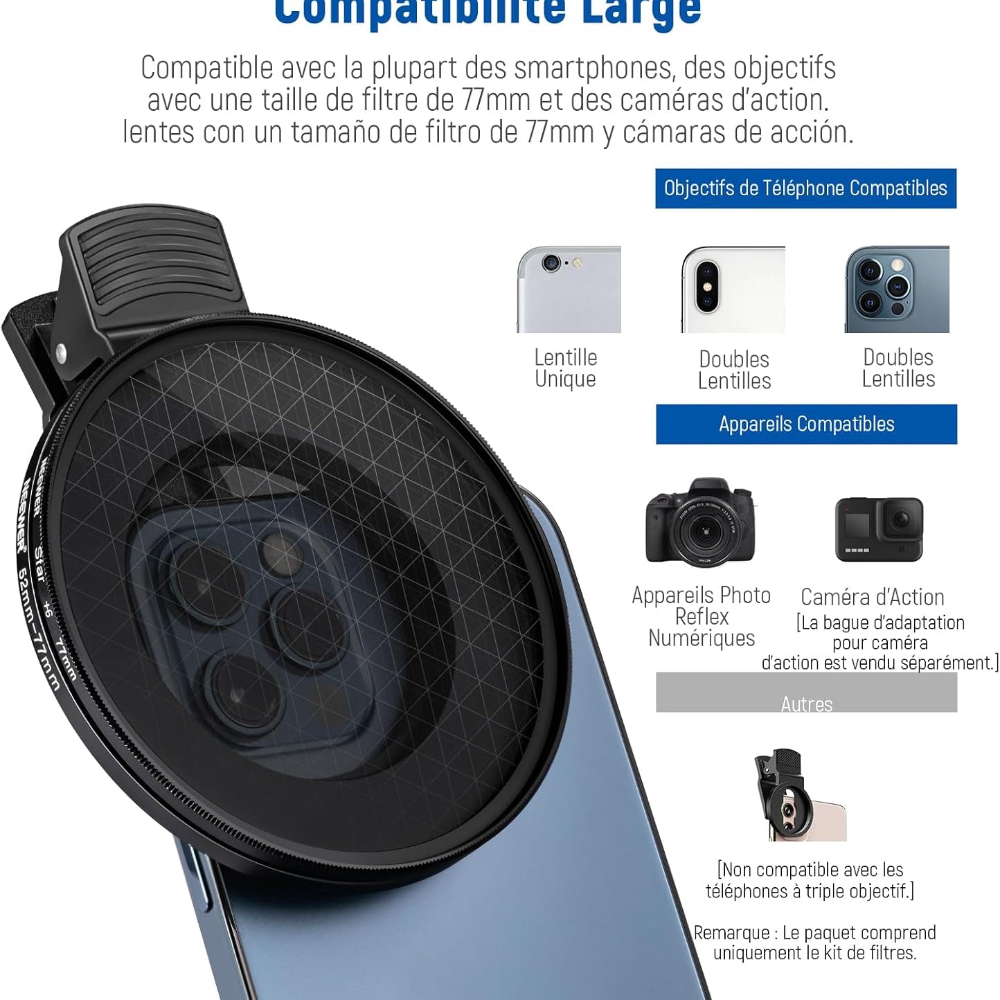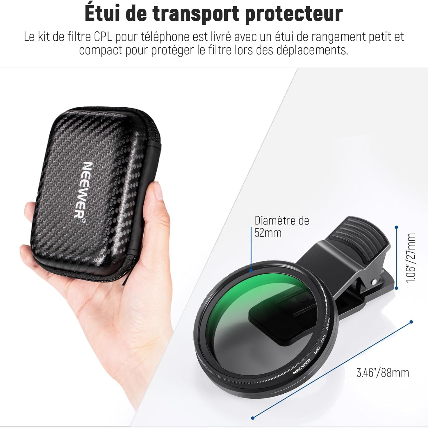 Les objectifs pour téléphone NEEWER sont utiles pour améliorer l'appareil photo de votre smartphone et rehausser votre photographie mobile. Notre collection comprend une variété d'objectifs, tels que des objectifs macro, téléobjectifs, microscopiques et fisheye. Ces objectifs sont parfaits pour la photographie de rue, de paysage, d'architecture et de groupe. Choisissez des objectifs de haute qualité pour votre appareil photo de téléphone afin de prendre des photos époustouflantes.