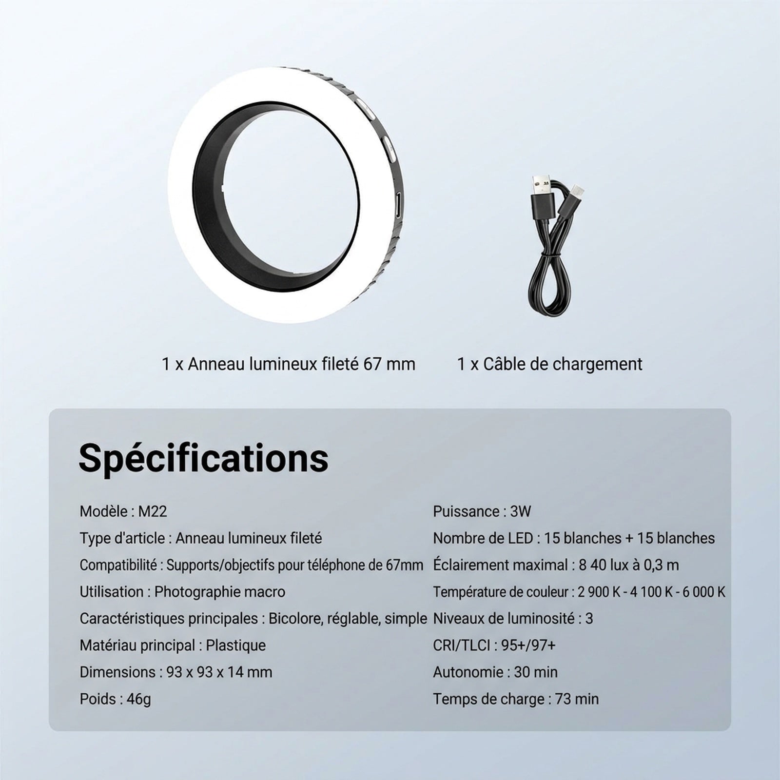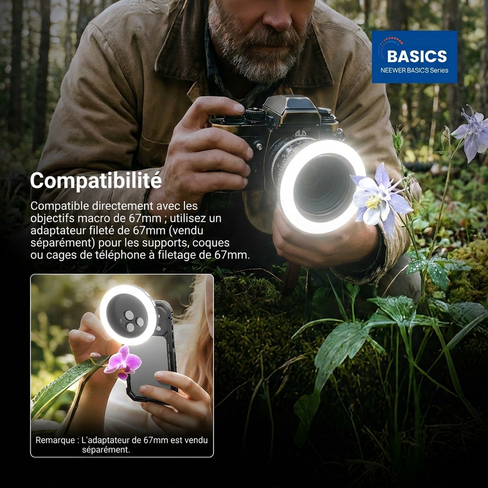 NEEWER BASICS M22 Anneau Lumineux fileté 67mm pour Supports de téléphone/étuis/Objectif