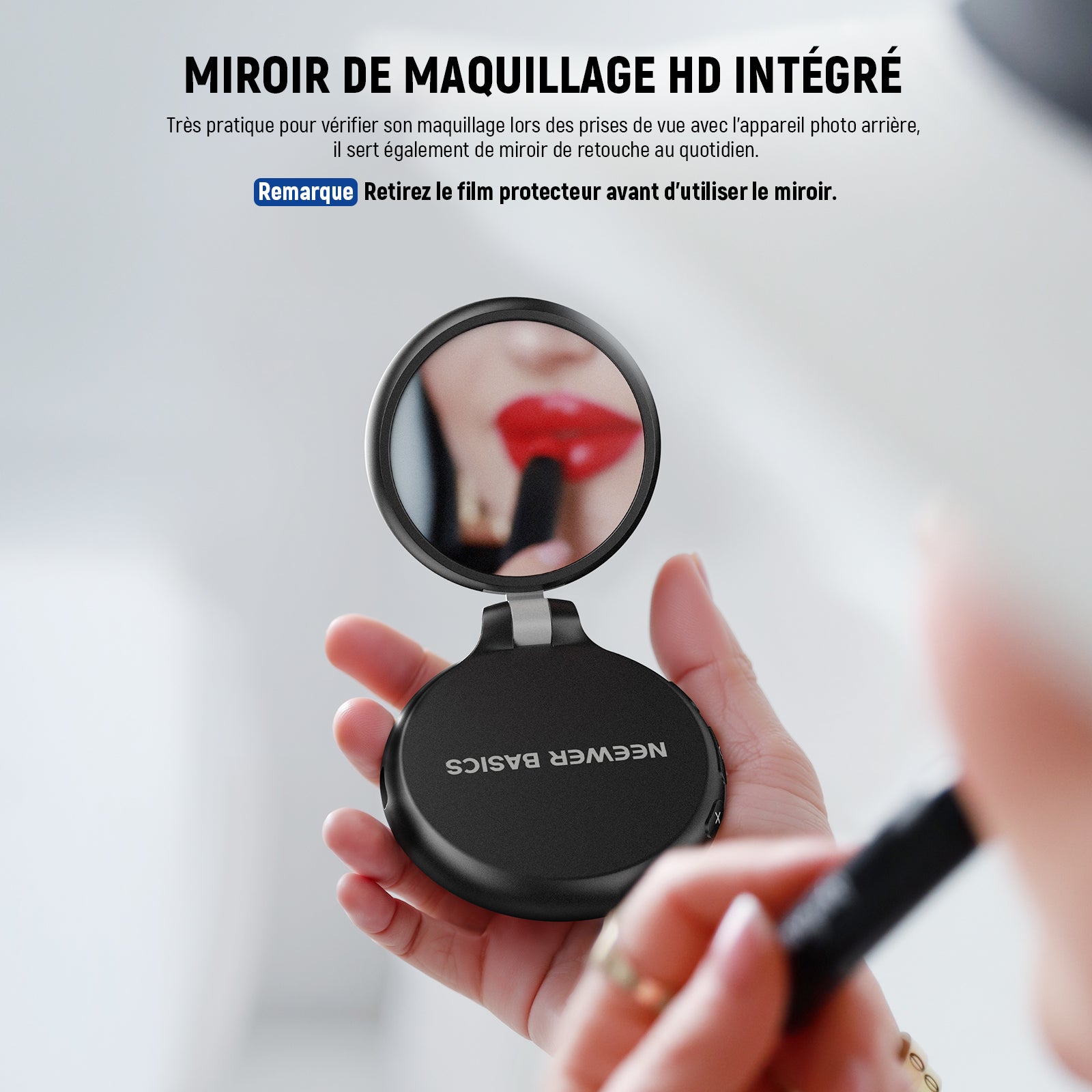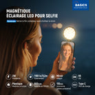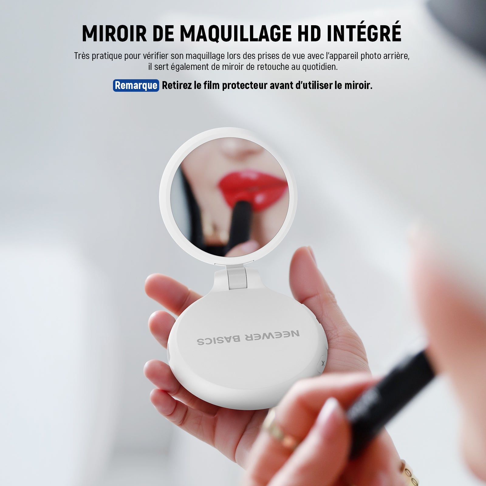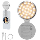 - 【Mini lampe à selfie multifonction avec miroir】Cette lumière de remplissage à LED compacte et légère pour la photographie et les appels vidéo se replie jusqu'à 73 x 67 x 23mm,facile à glisser dans votre poche et à transporter partout. Se monte sur votre téléphone pour des prises de vue par le haut, ou se positionne sur un bureau ou une table comme un support de téléphone compatible avec iPhone, et comme miroir de maquillage pour contrôler ou retoucher le maquillage en plein air.