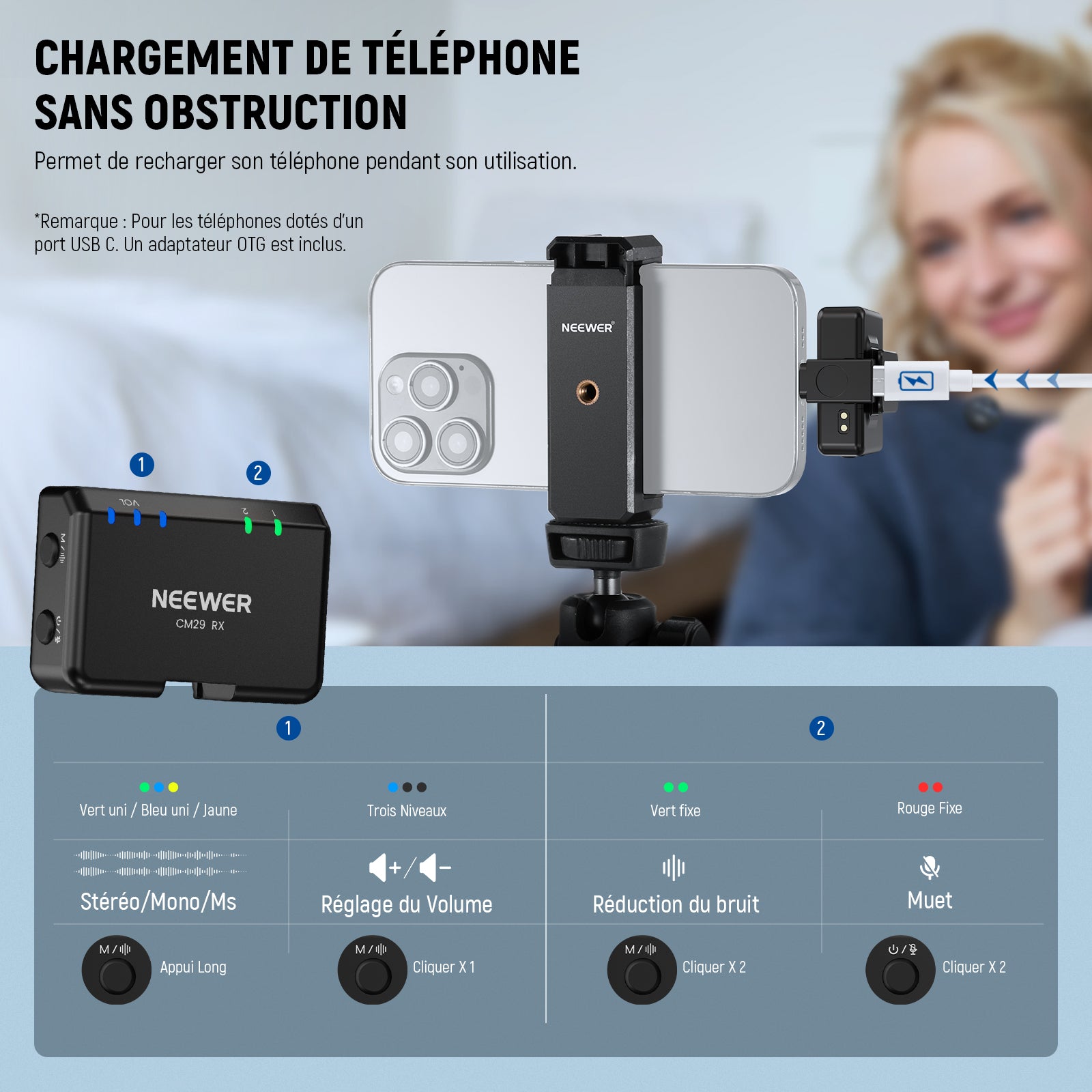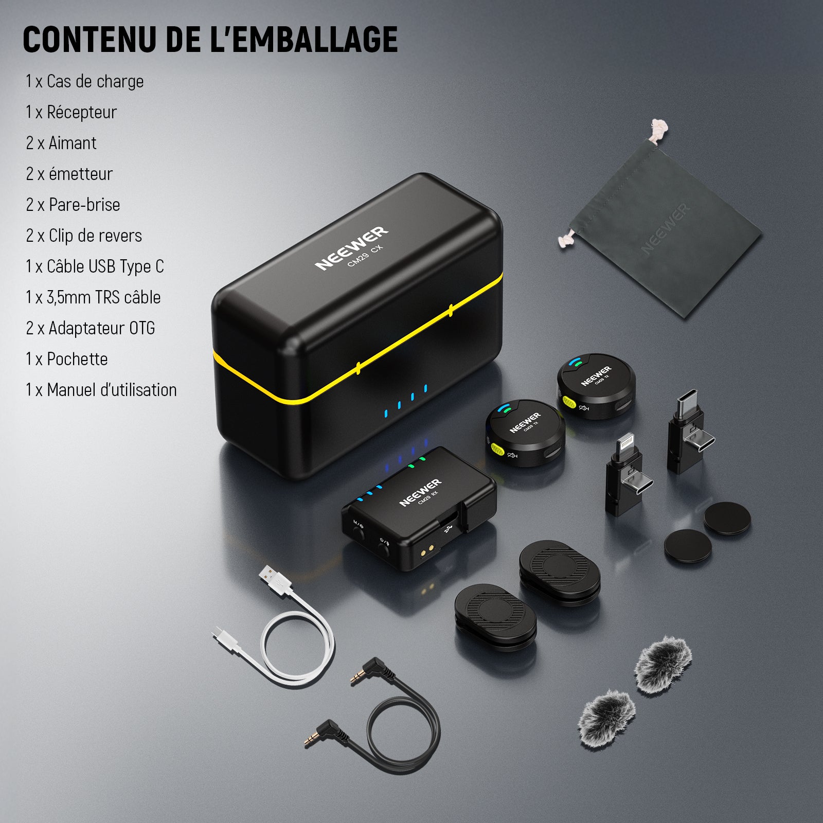 NEEWER CM29 Microphone sans Fil avec étui Chargement