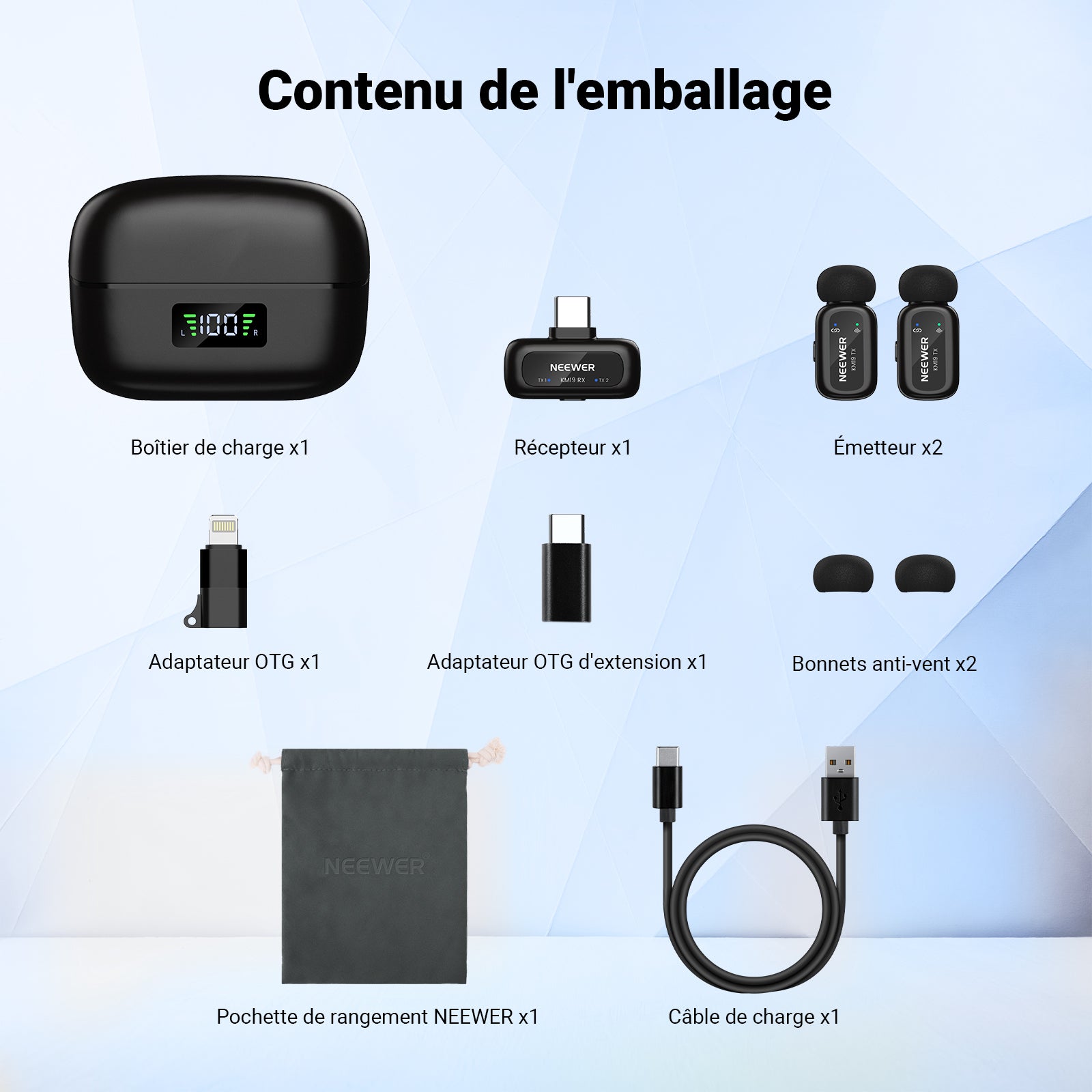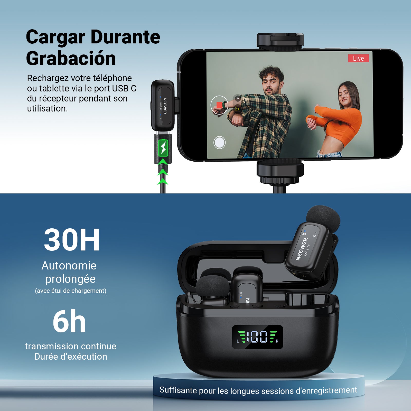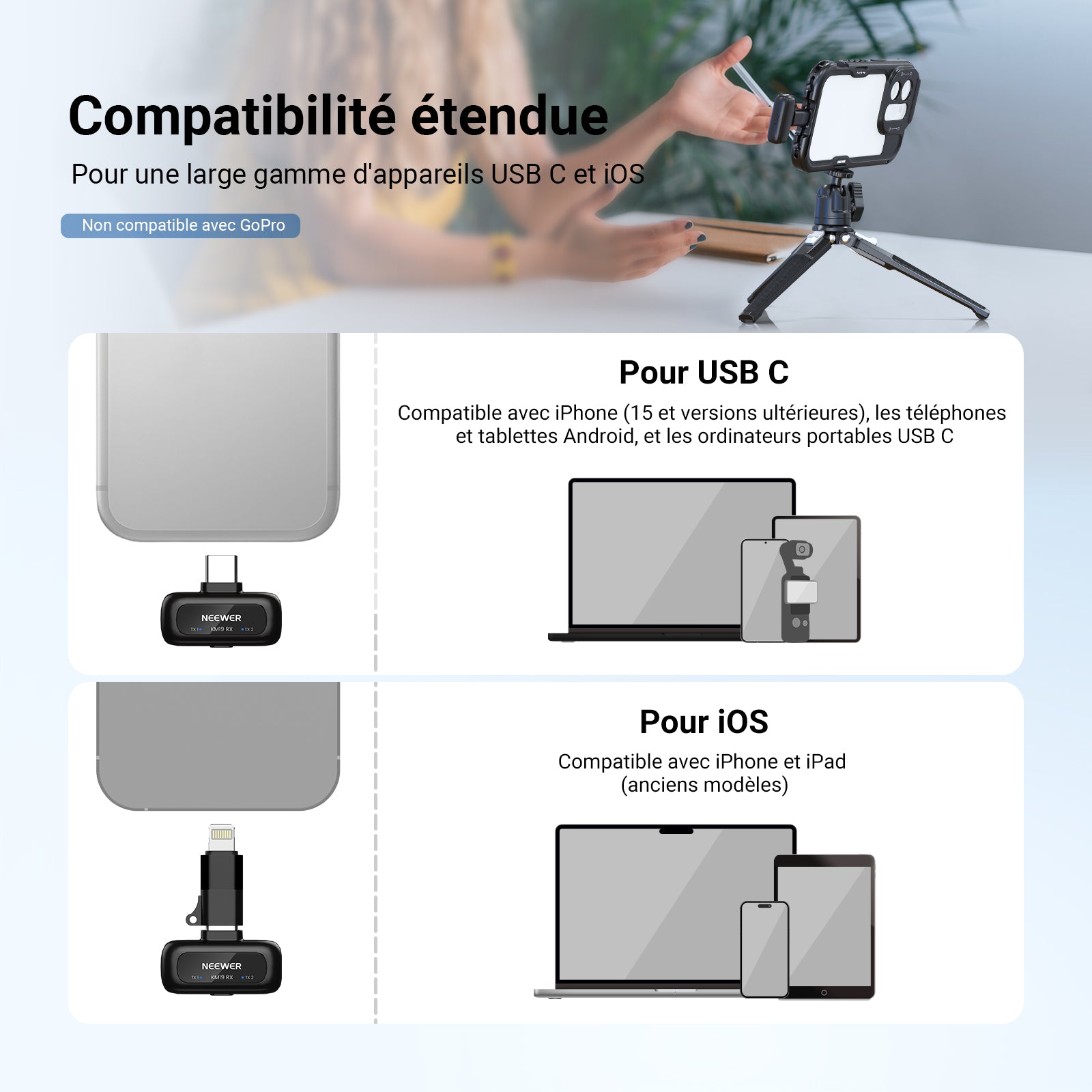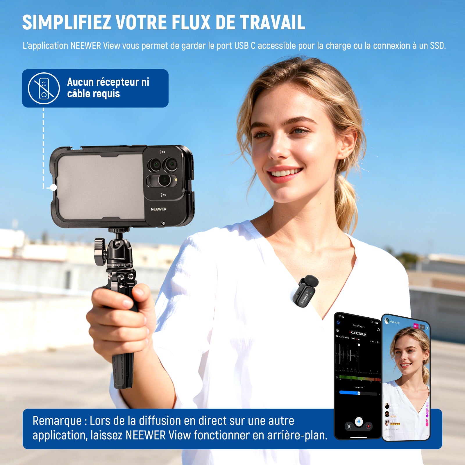 - 【Simplifiez votre flux de travail】 Cet émetteur micro sans fil se connecte directement à votre smartphone ou tablette via l'application NEEWER View: aucun récepteur ni câble n'est nécessaire et aucun port de charge n'est occupé.