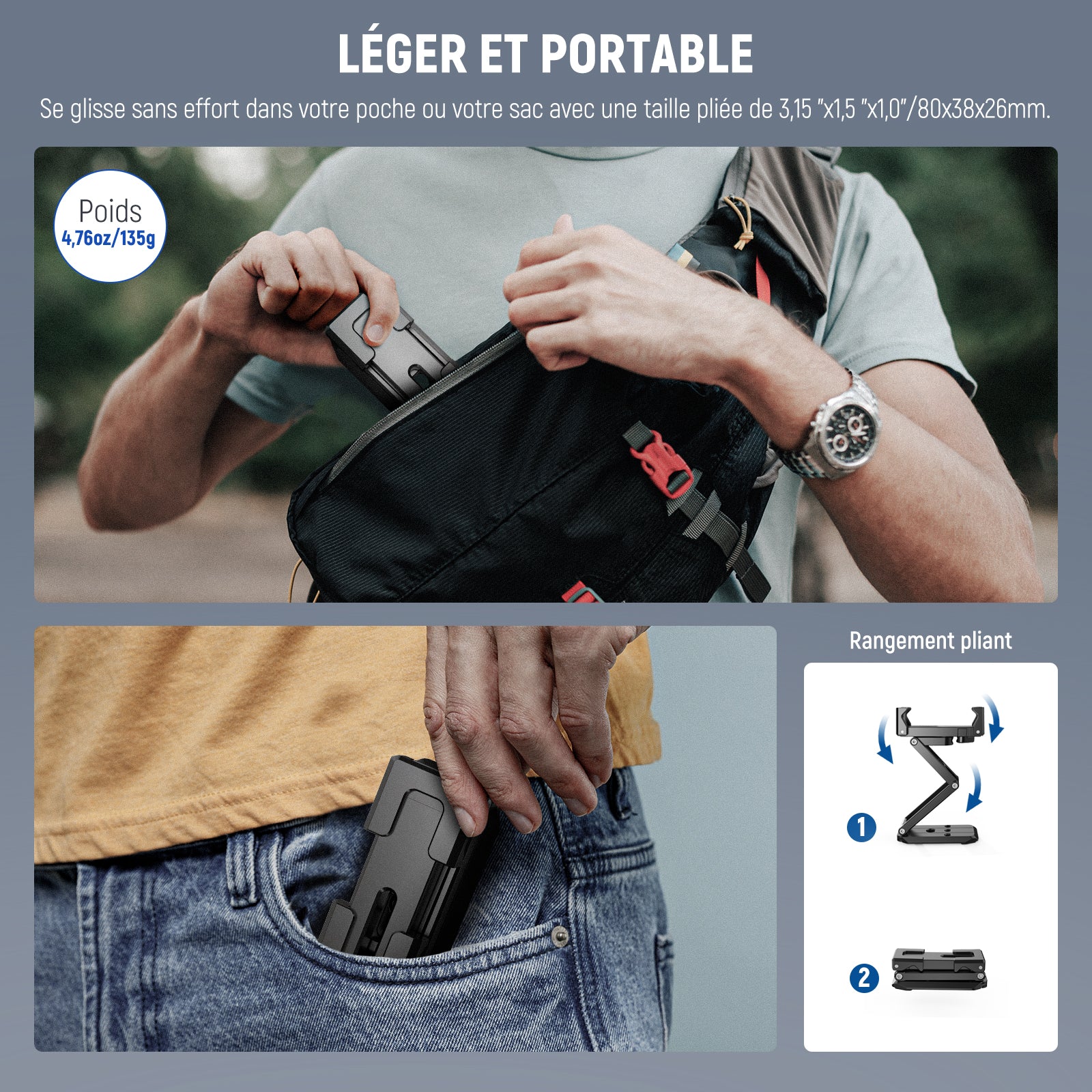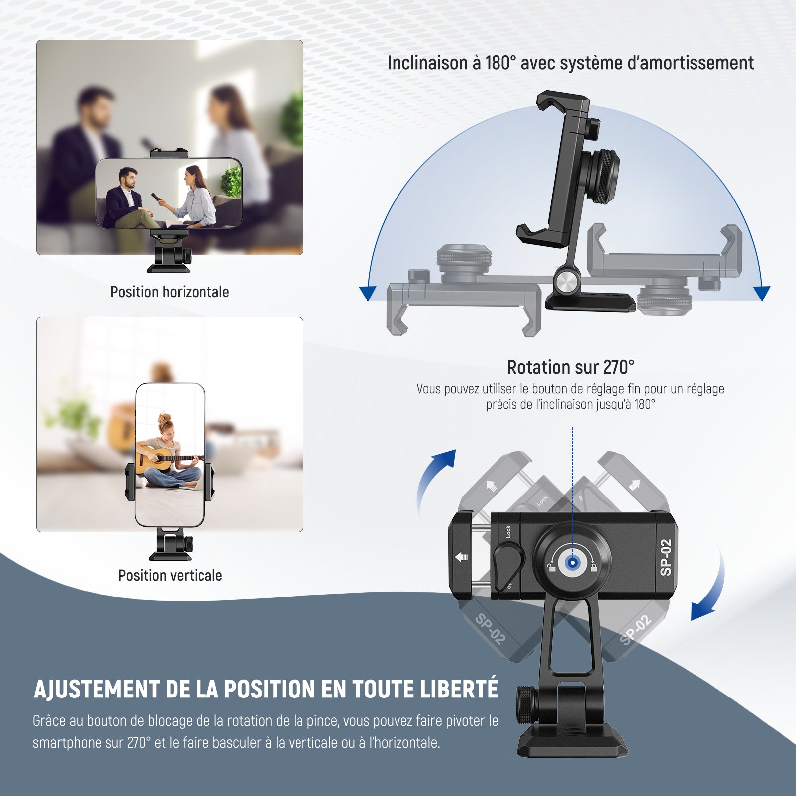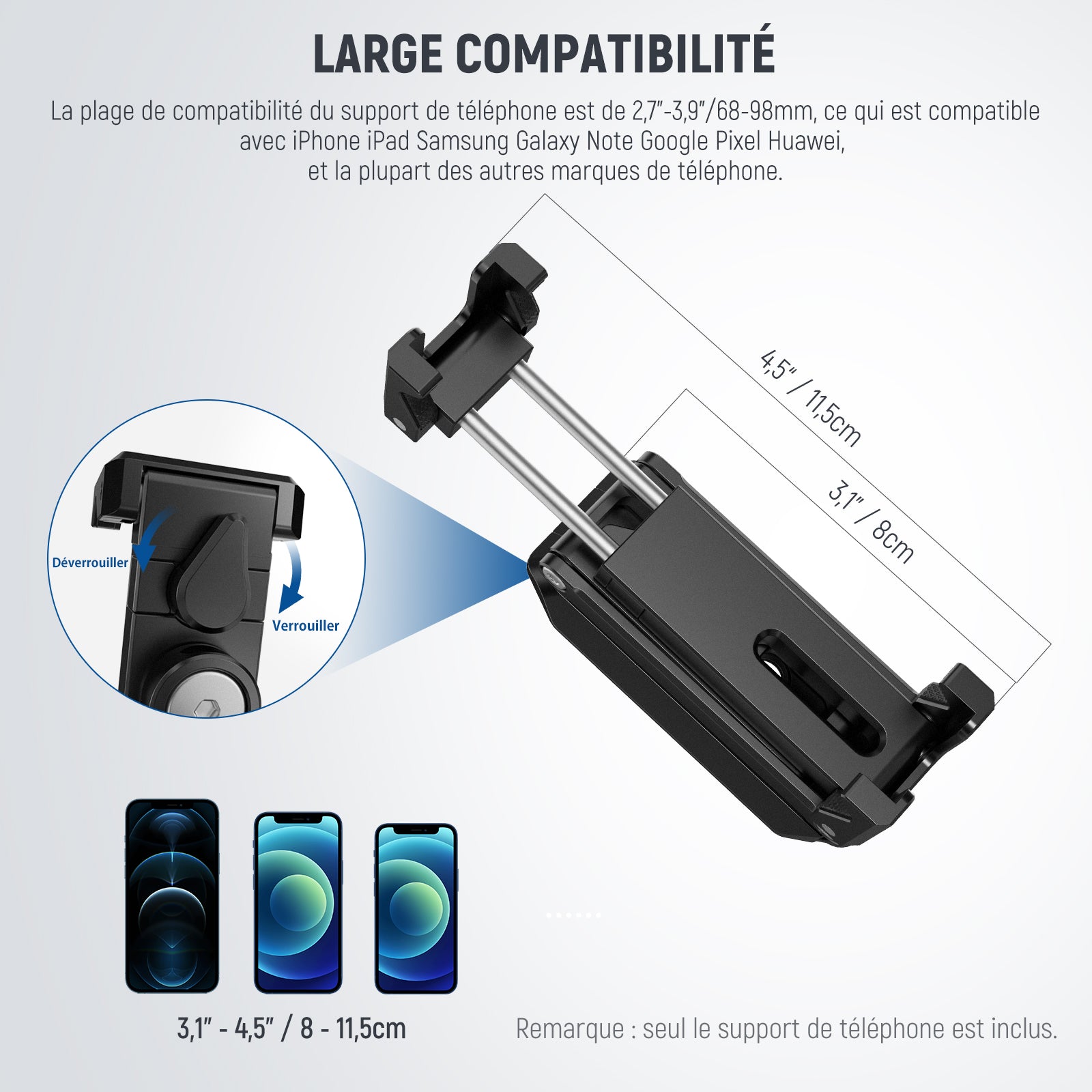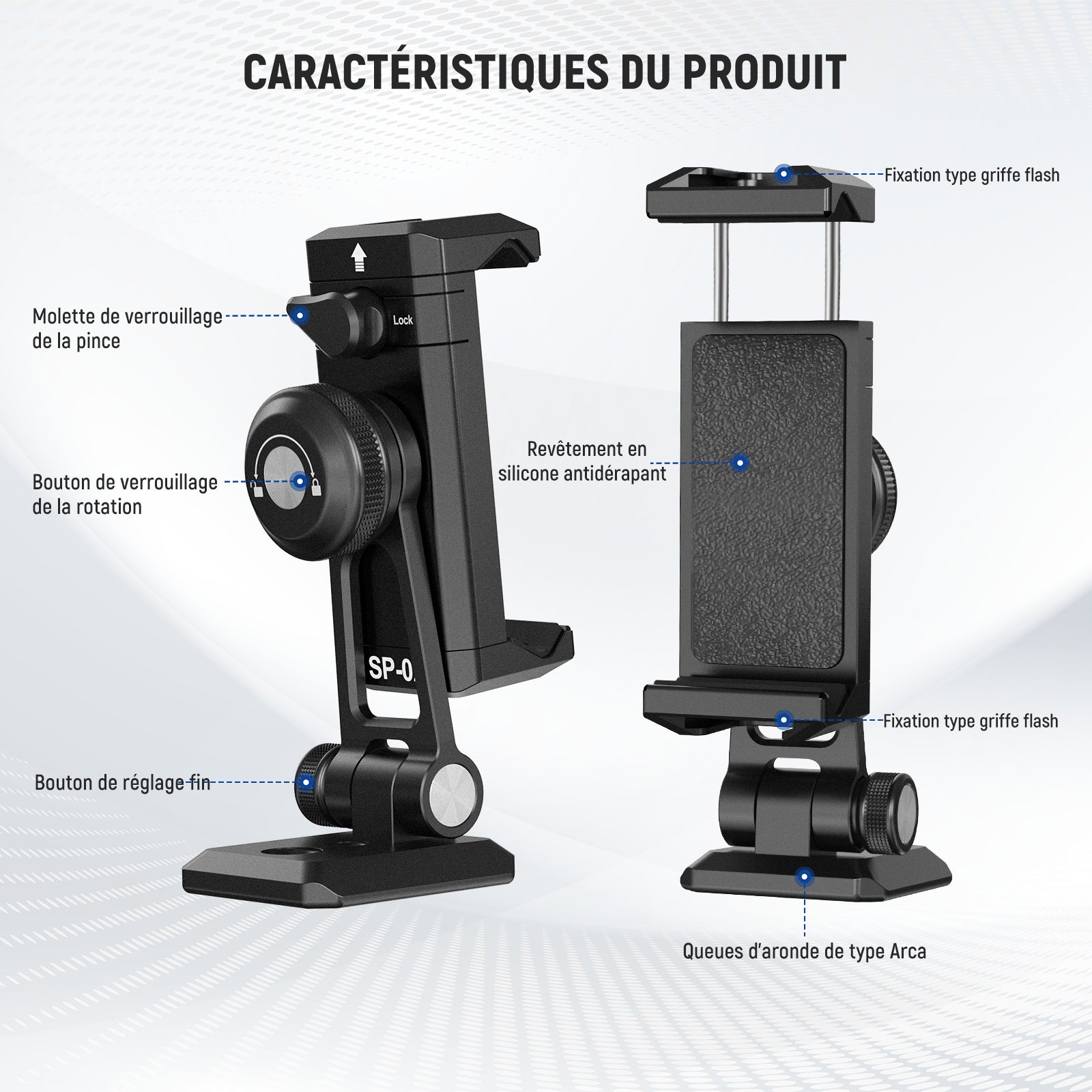 Cages/étuis de téléphone dédiés et universels, poignées, commandes Bluetooth, chariots, glissières, trépieds et autres accessoires pour la photographie mobile.