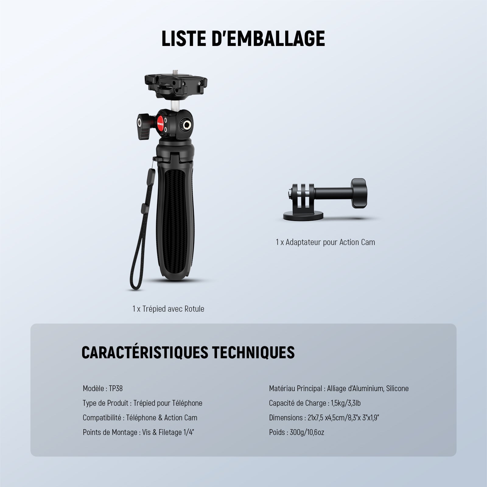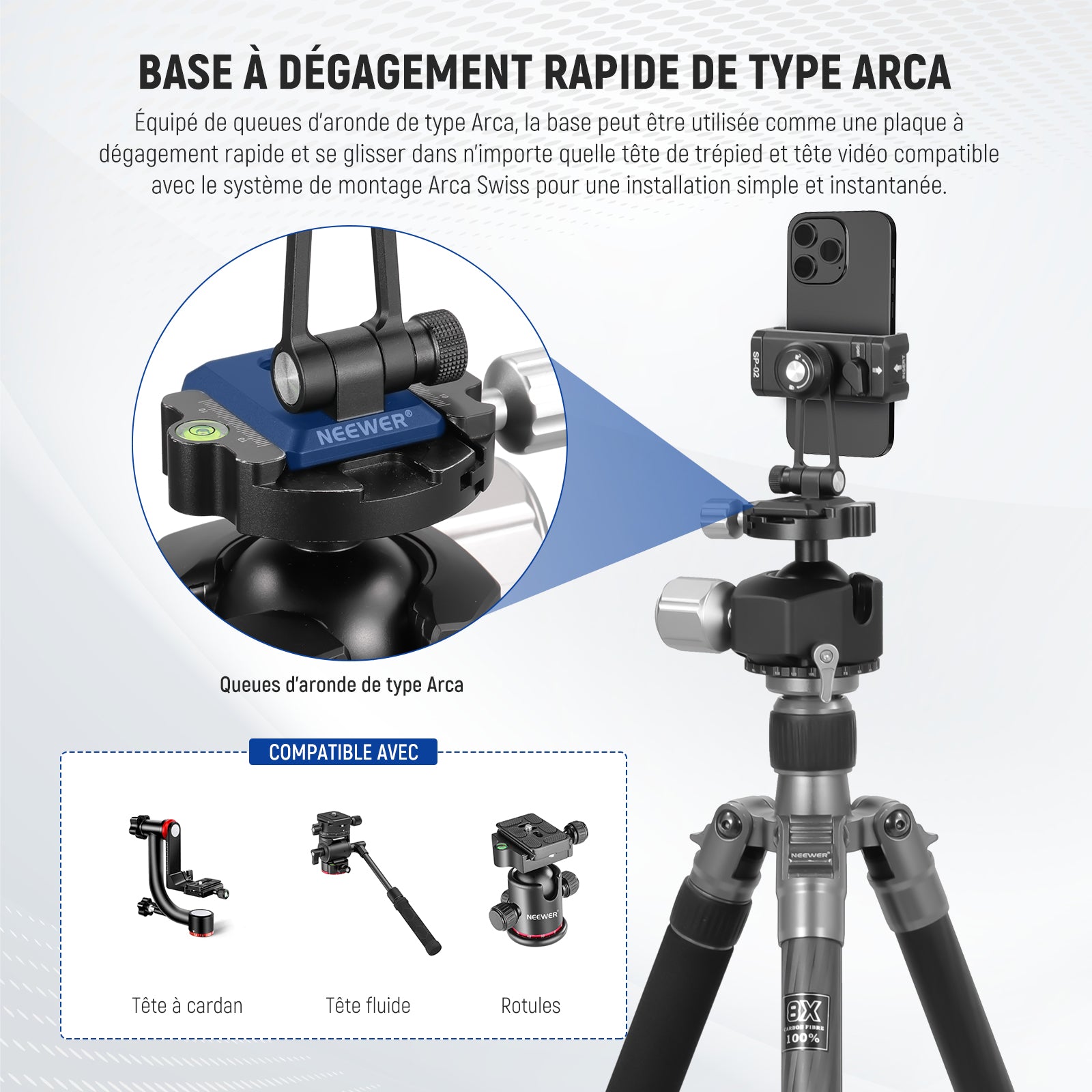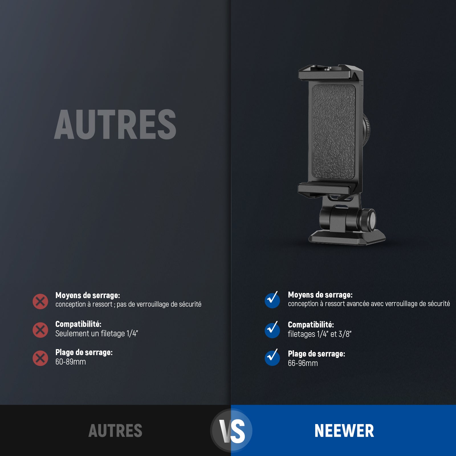 Les rigs pour smartphone NEEWER sont conçus pour améliorer vos vidéos mobiles. Notre gamme comprend des supports de trépied, des cages pour téléphone, des stabilisateurs, et plus encore. Compatibles avec une large variété de smartphones, y compris les iPhone, Samsung et autres marques, ces accessoires s’adaptent facilement à vos besoins.