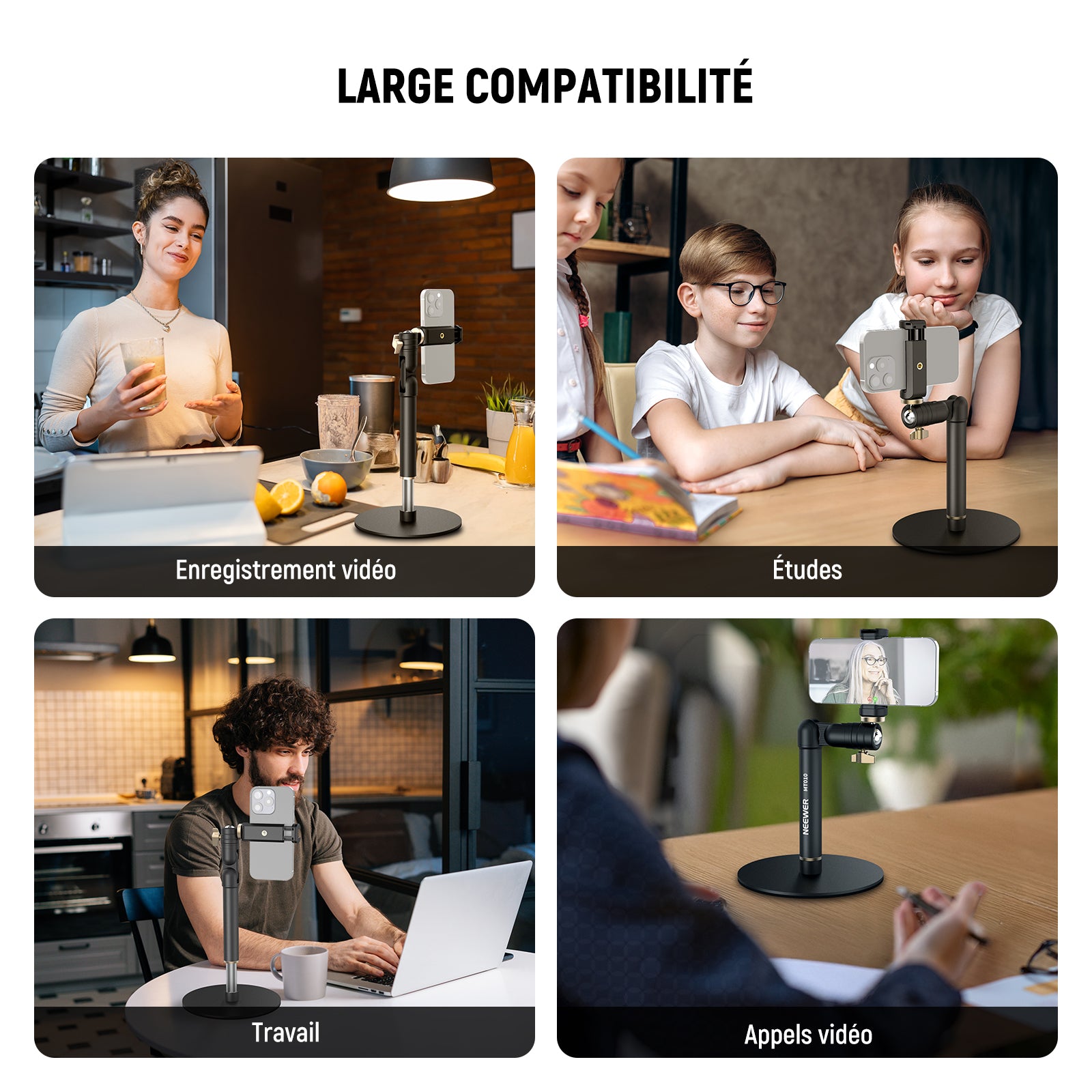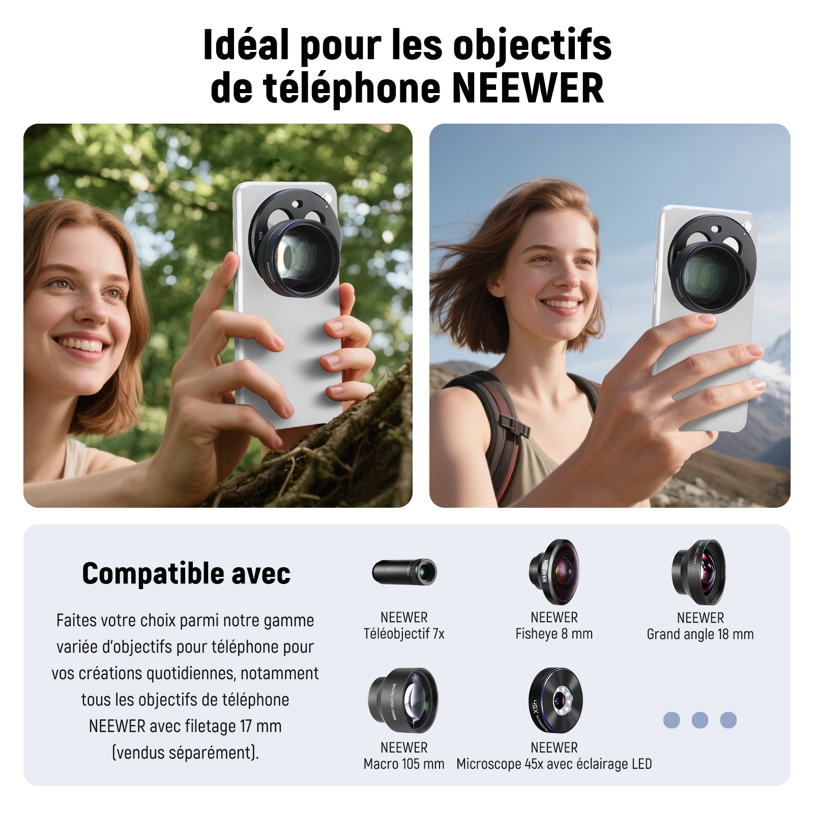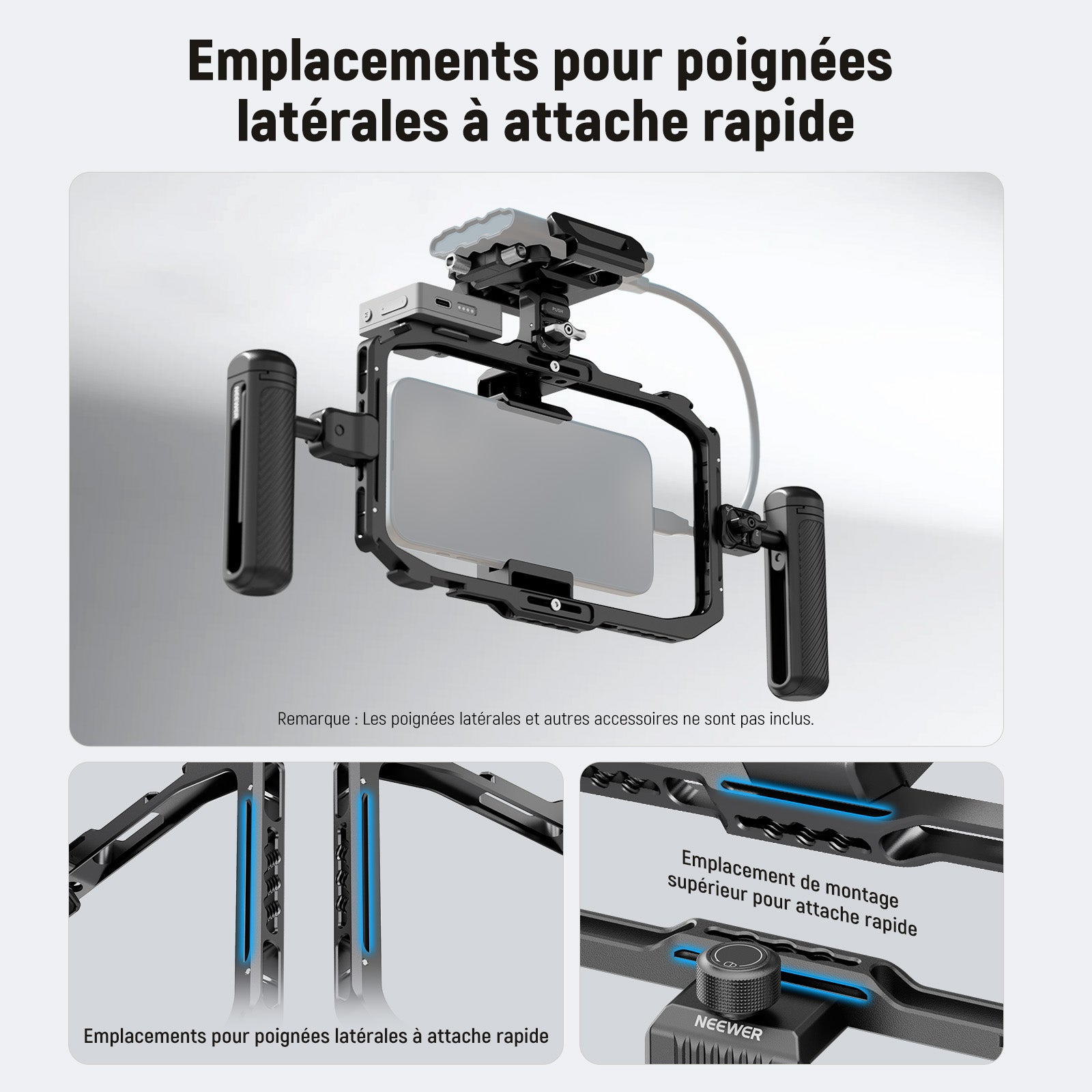 Les rigs pour smartphone NEEWER sont conçus pour améliorer vos vidéos mobiles. Notre gamme comprend des supports de trépied, des cages pour téléphone, des stabilisateurs, et plus encore. Compatibles avec une large variété de smartphones, y compris les iPhone, Samsung et autres marques, ces accessoires s’adaptent facilement à vos besoins.