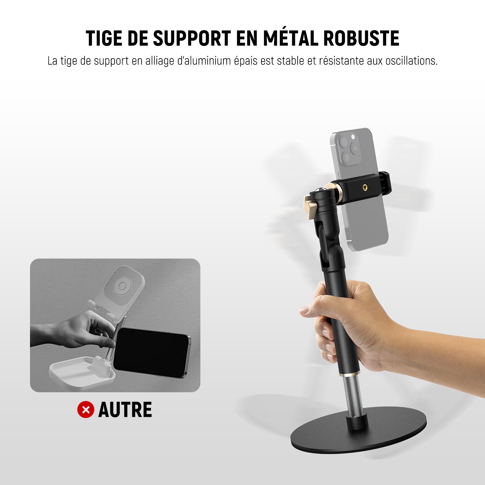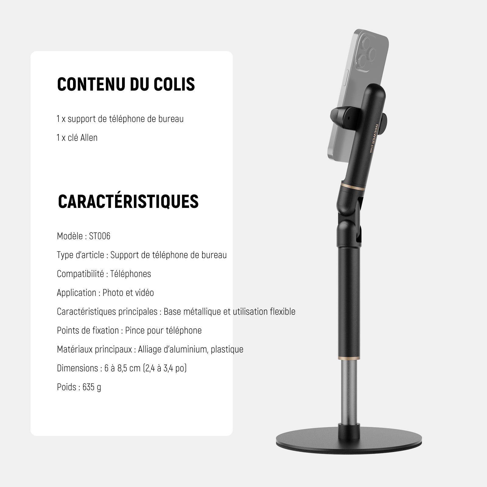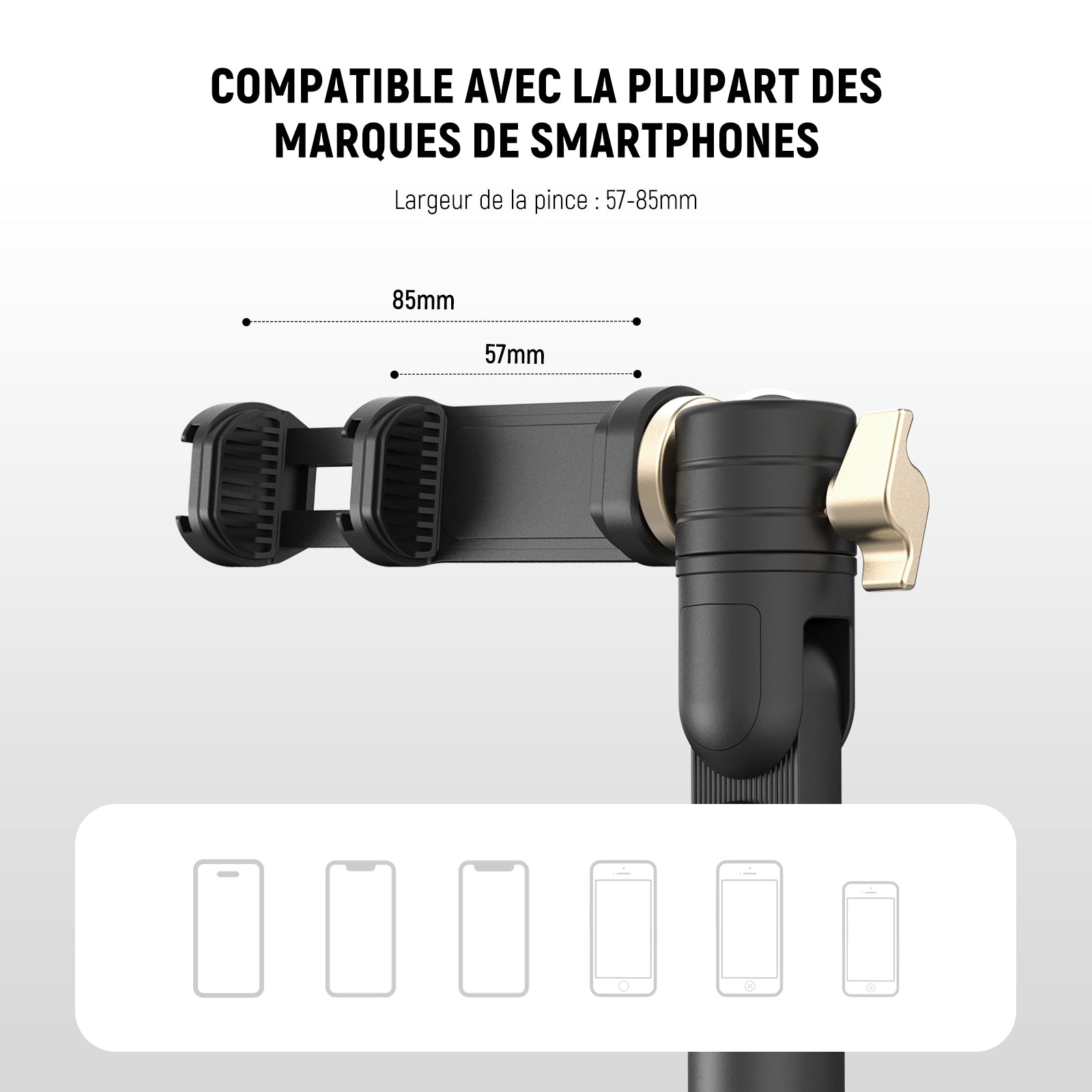 Cages/étuis de téléphone dédiés et universels, poignées, commandes Bluetooth, chariots, glissières, trépieds et autres accessoires pour la photographie mobile.