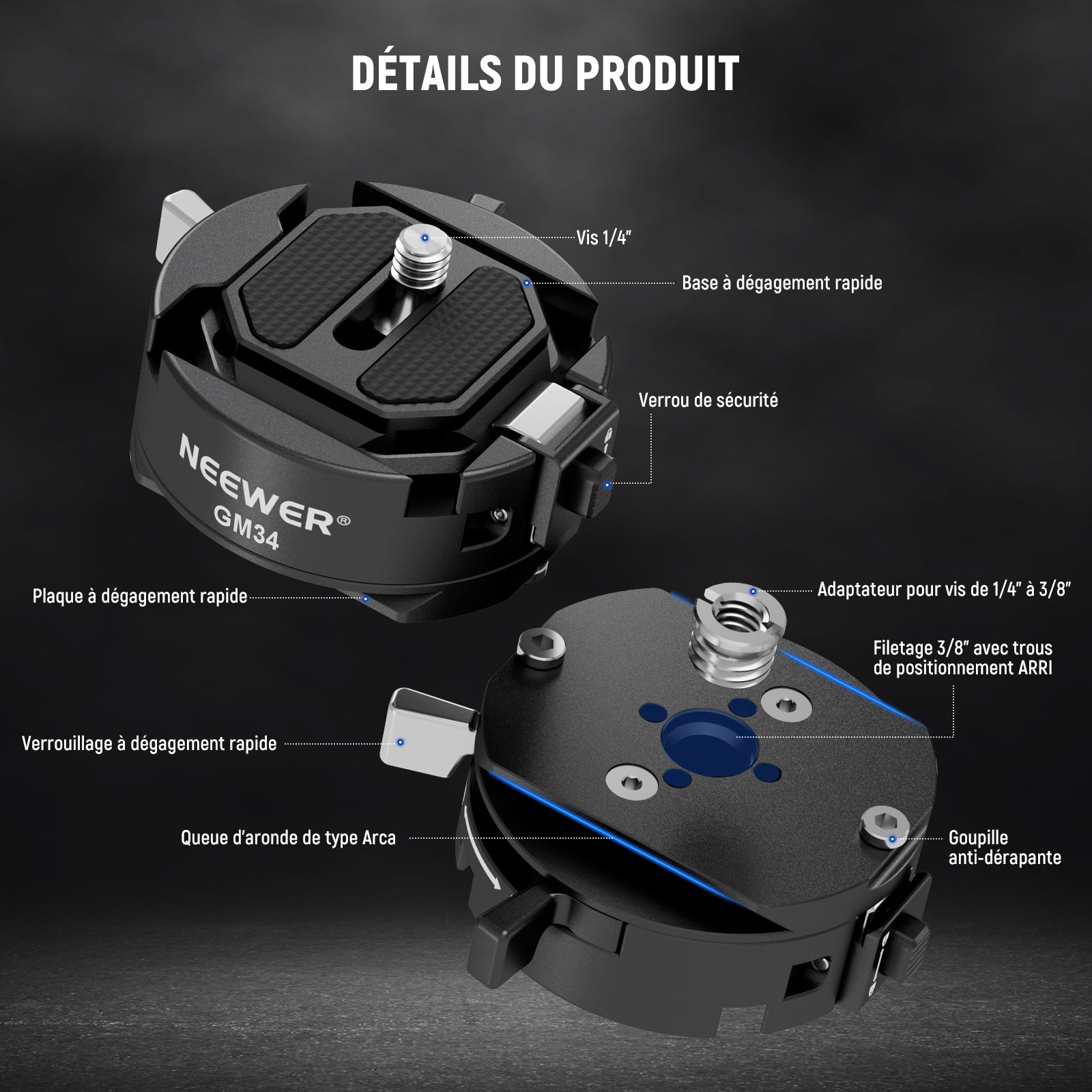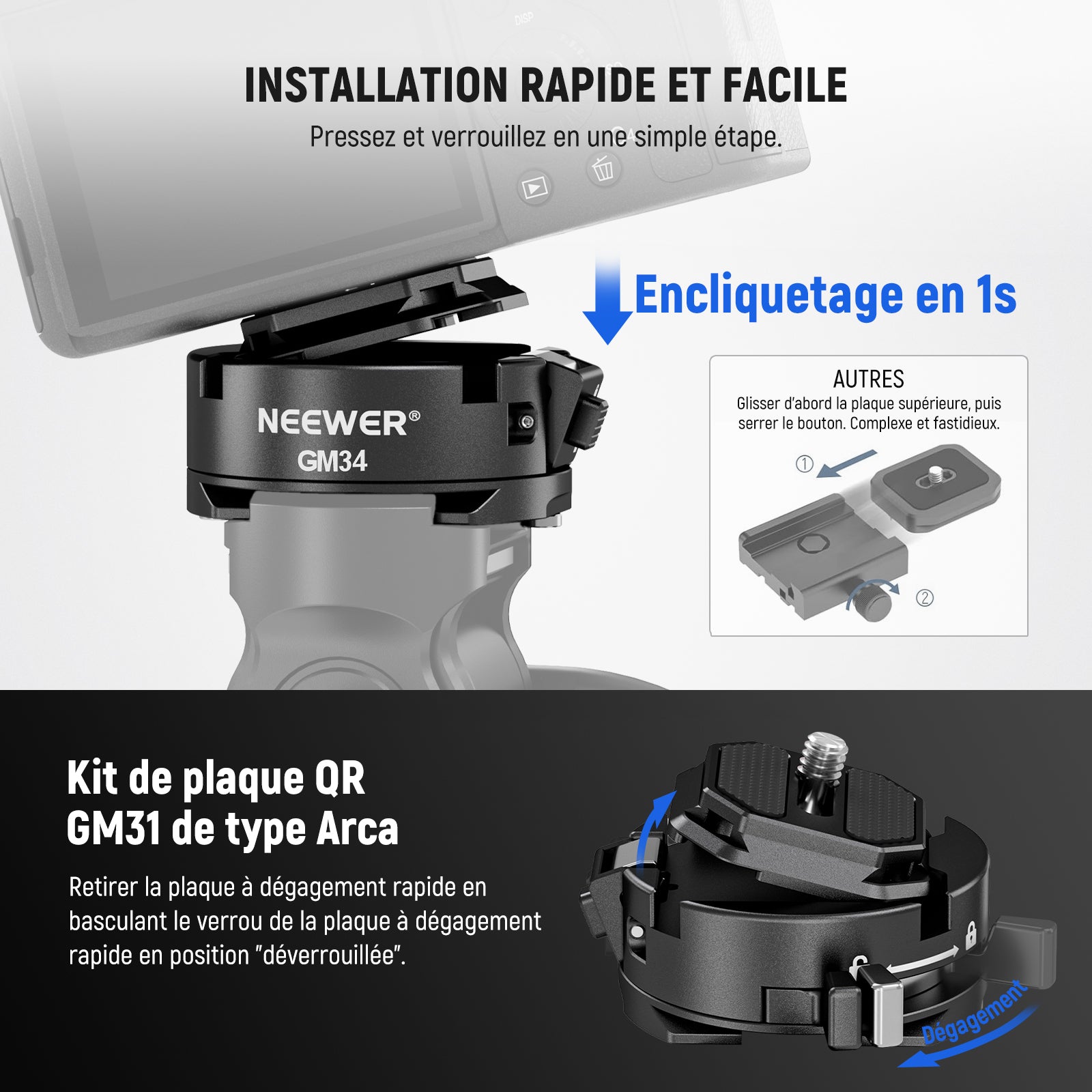 NEEWER GM34 Kit de Plaque à Dégagement Rapide Type Arca