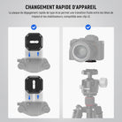 - 【Mécanisme de Verrouillage Automatique】 Enfoncez fermement la plaque à dégagement rapide montée sur l'appareil photo dans la pince, le loquet de la plaque à dégagement rapide se mettra automatiquement en position "verrouillé" et maintiendra l'appareil photo en place.