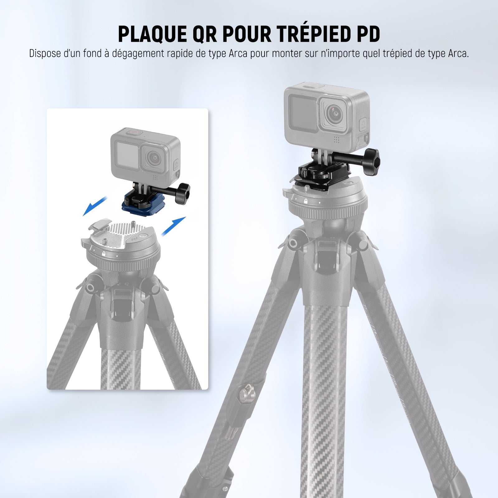 - 【Commutation rapide entre différents appareils】 Montez la plaque QR sur la base de serrage GM31 avec des queues d'aronde de type Arca, permettant ainsi de passer facilement à la photographie sur des cardans ou des trépieds compatibles. Dotée d'une vis filetée d'adaptateur de 3/8" à 1/4", la plaque à dégagement rapide vous permet de monter votre caméra d'action sur un trépied, une perche à selfie, un monopode, un bras magique et une super pince pour différentes scènes de prise de vue