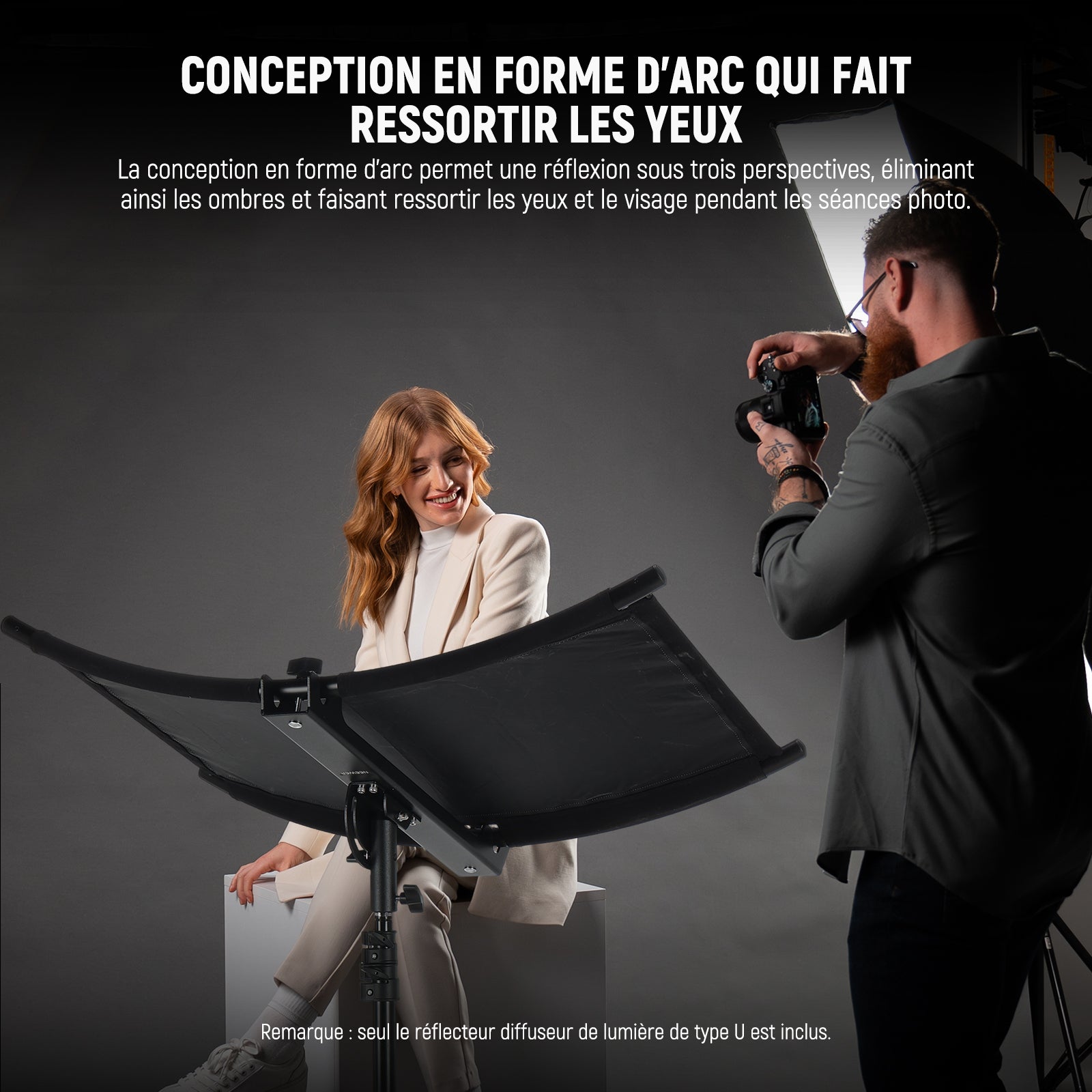 - 【Faites ressortir les yeux avec un design en forme d'arc】 Le réflecteur à clapet NEEWER RF-04 imite la courbure des yeux humains et fait rebondir la lumière en croissant pour faire scintiller les yeux dans la photographie de portrait. La lumière réfléchie de manière transparente à partir de trois perspectives peut éliminer les ombres, et le tissu est adapté aux stroboscopes, monolights, lumières LED et même à la lumière naturelle du soleil