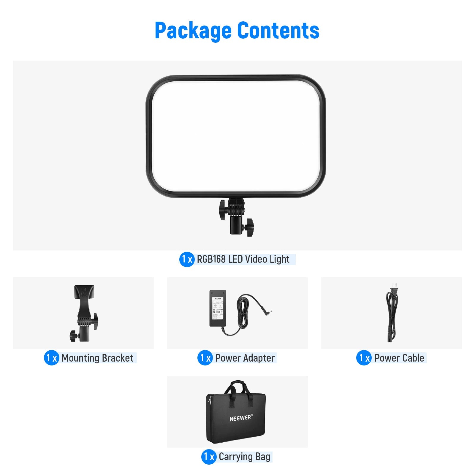 - 1 × Lumière vidéo LED RVB168