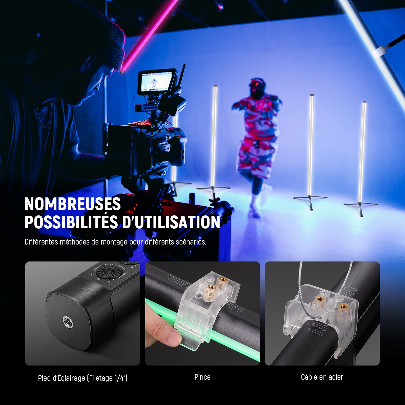 - 【Réseau avec d'autres Éclairages NEEWER】 Lorsqu'il est contrôlé en 2,4G ou avec l'APP NEEWER, le TL120C peut s'associer aux TL60/BH30S/CB300/CB300B/CB200/CB200B/FS150/FS150B/FS230 et à d'autres éclairages LED NEEWER pour des effets lumineux exceptionnels. Idéal pour la publicité, la réalisation de films, la production télévisuelle, les clips musicaux... Vous pouvez le monter sur le support de stick lumineux CTN5 ou le connecter à une console DMX avec le kit de câbles RJ45 vers XLR NC005/NC006.