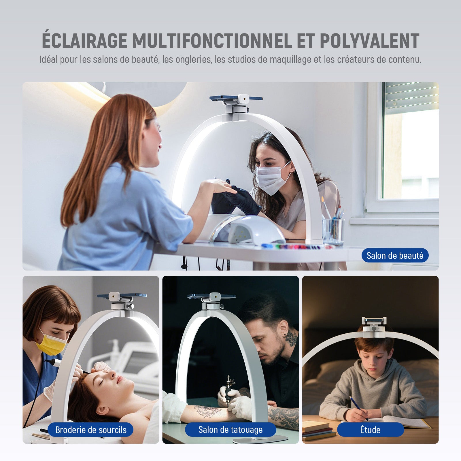 - 【Lampe de bureau LED polyvalente】 Outil indispensable pour les créateurs de contenu, les salons de beauté, les studios de maquillage, etc., cette lampe LED multifonctionnelle avec support pour téléphone est idéale comme éclairage d'appoint et d'appoint pour diverses tâches, notamment la manucure, le maquillage, les extensions de cils, la création de tatouages, les tutoriels photo et l'enregistrement. L'équipement indispensable pour les influenceurs