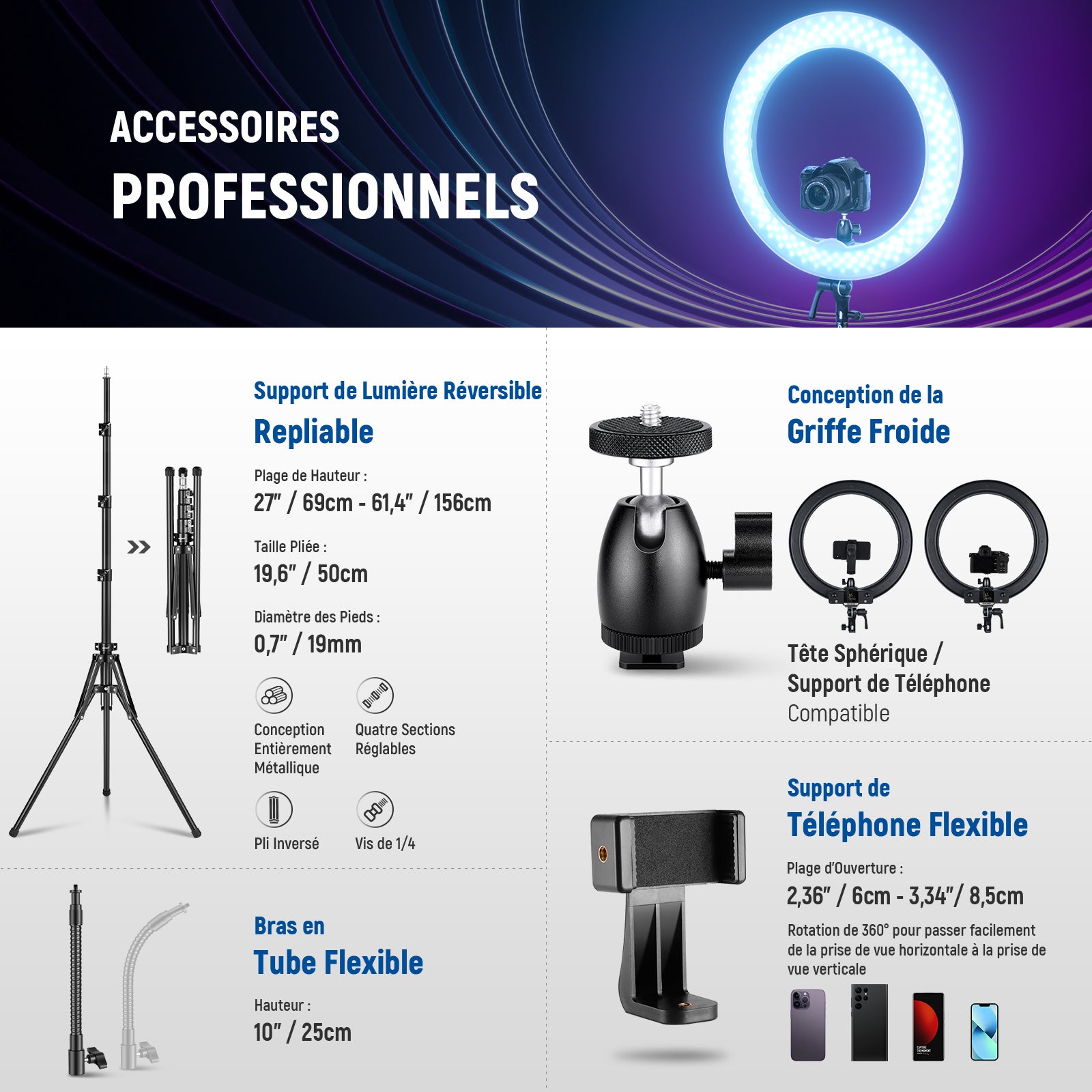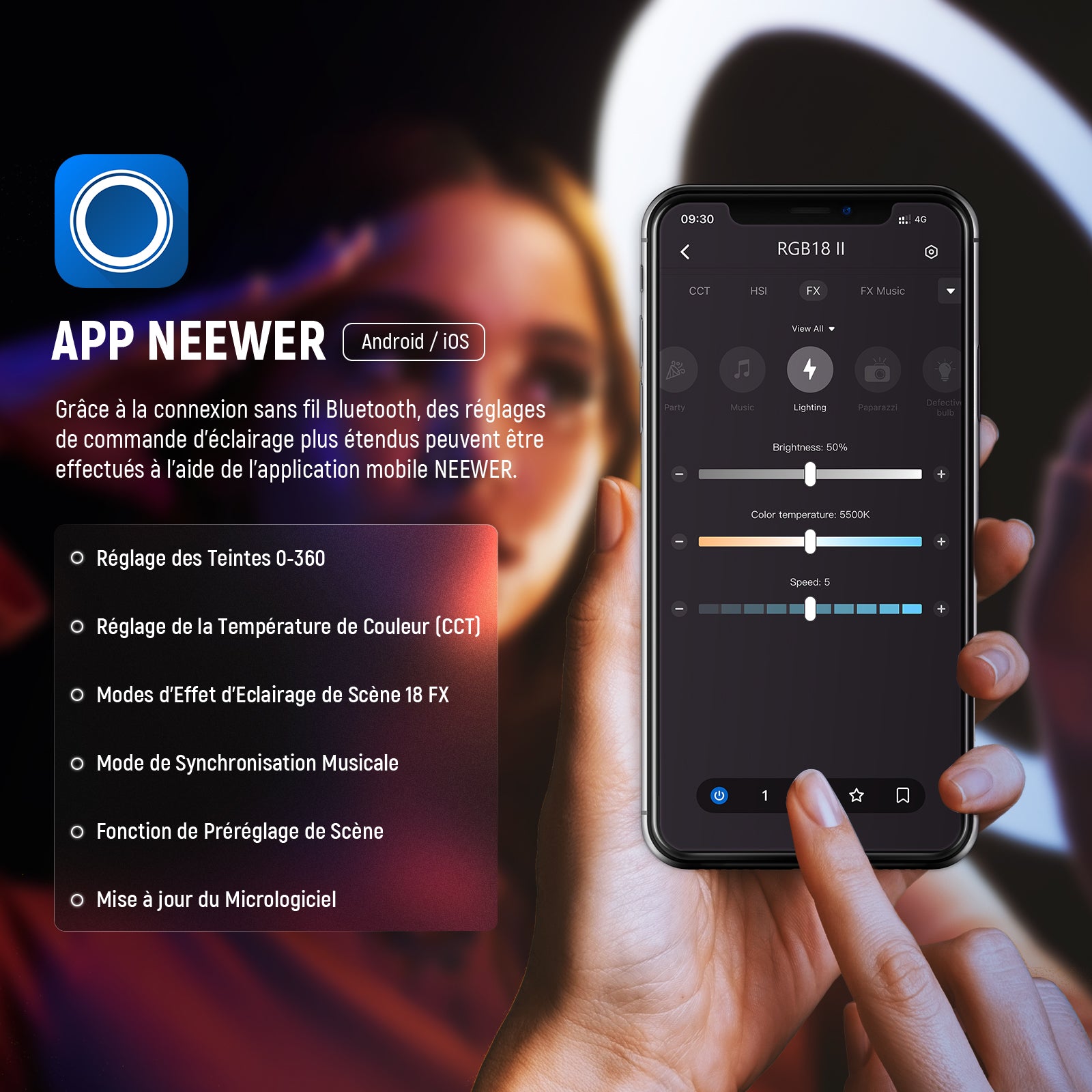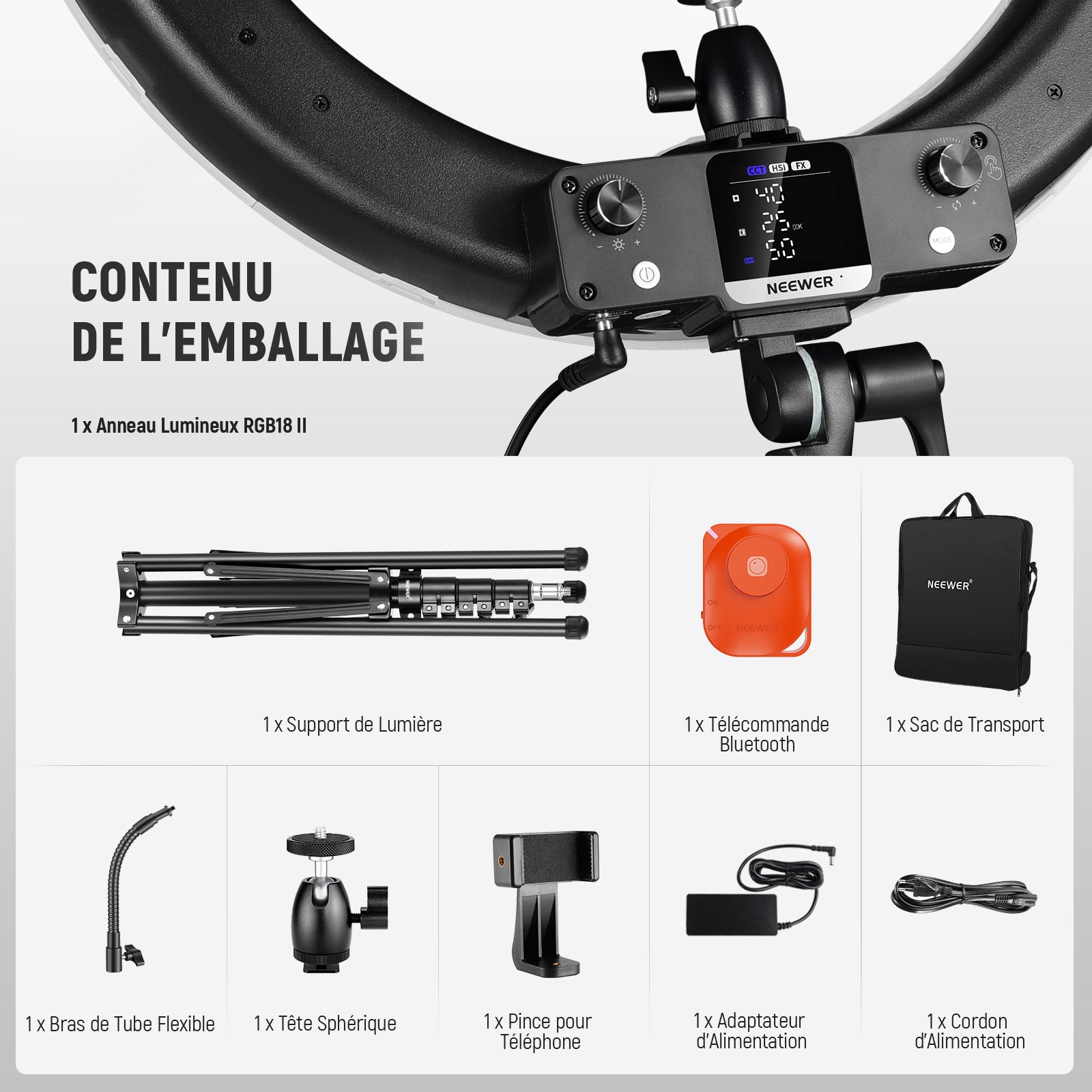 NEEWER RGB18 II Éclairage Anneau LED RGB de 18 Pouces avec Contrôle par APP