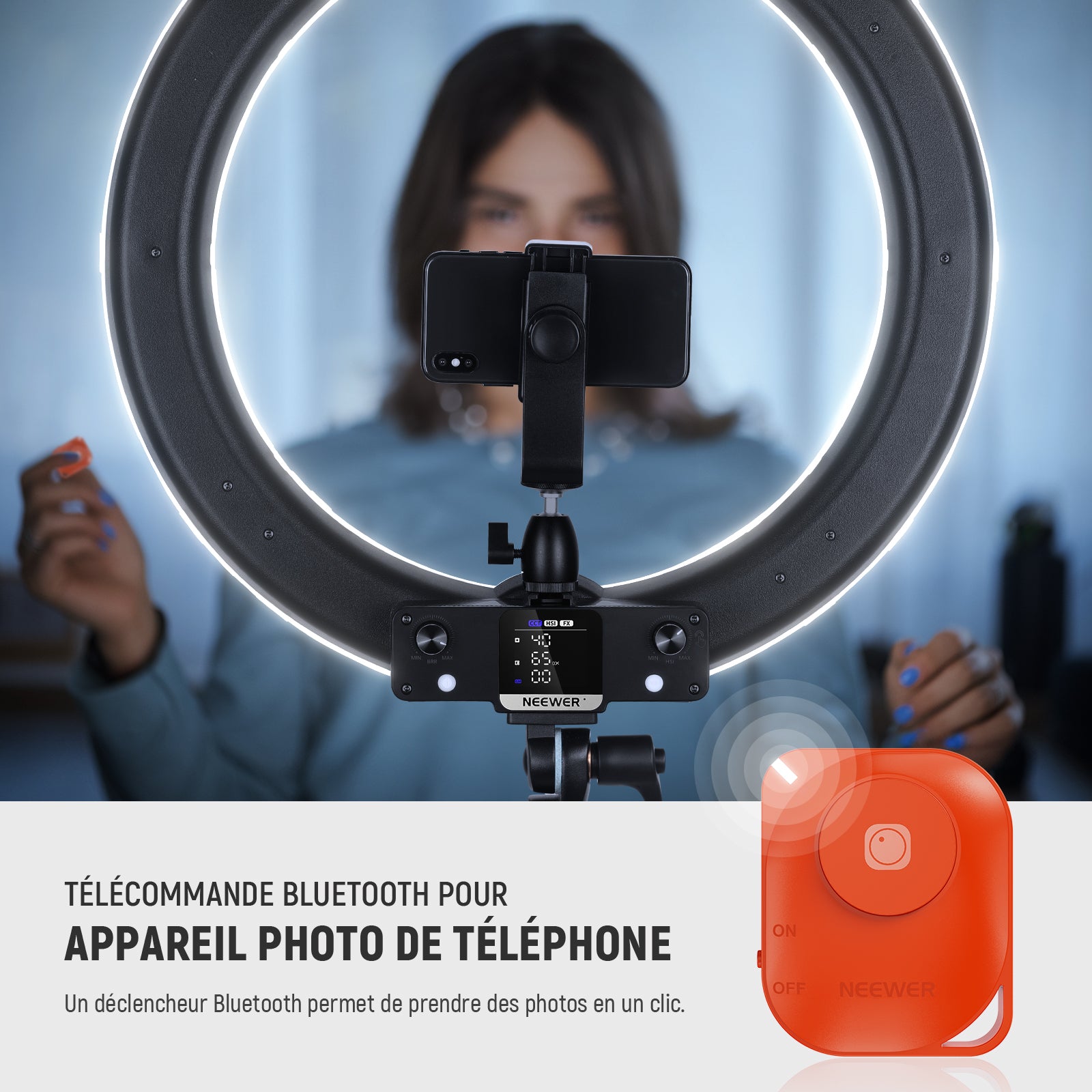 - 【Ring Light avec Support de Téléphone Universel】Le support de téléphone peut pivoter entre les orientations verticale et horizontale et s'adapte à la plupart des smartphones du marché, compatible avec iPhone 16 15 Pro Max 14 13 12 X Xs Max Samsung Galaxy S23 S22 Ultra Huawei Honor Magic5 Pro et plus. La rotule prend en charge un pivotement à 360° et une inclinaison à 90°, et la télécommande d'obturation Bluetooth vous permet de prendre des photos et des vidéos d'un simple clic sur le bouton.