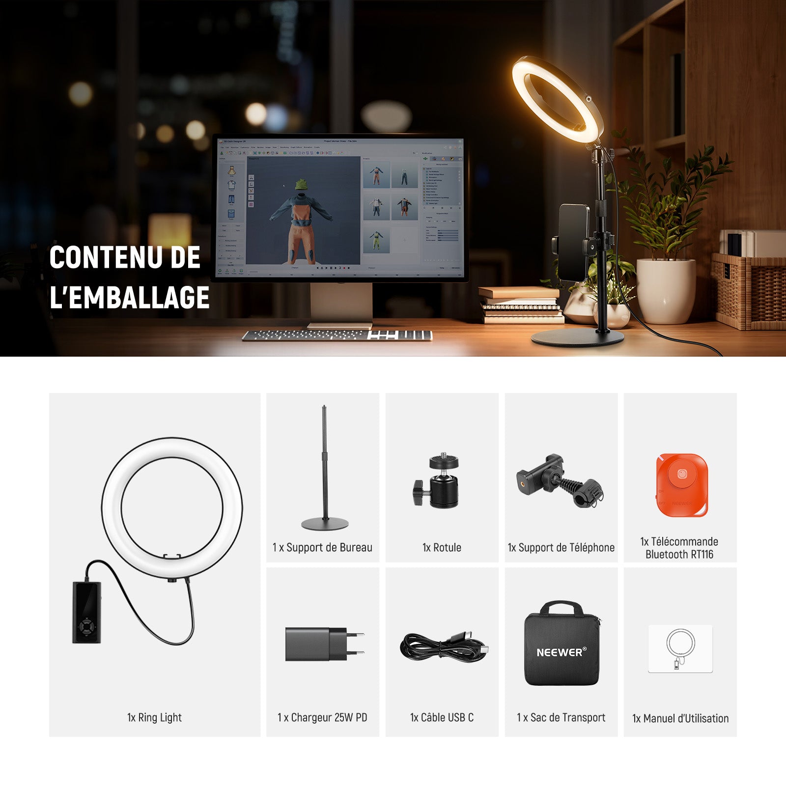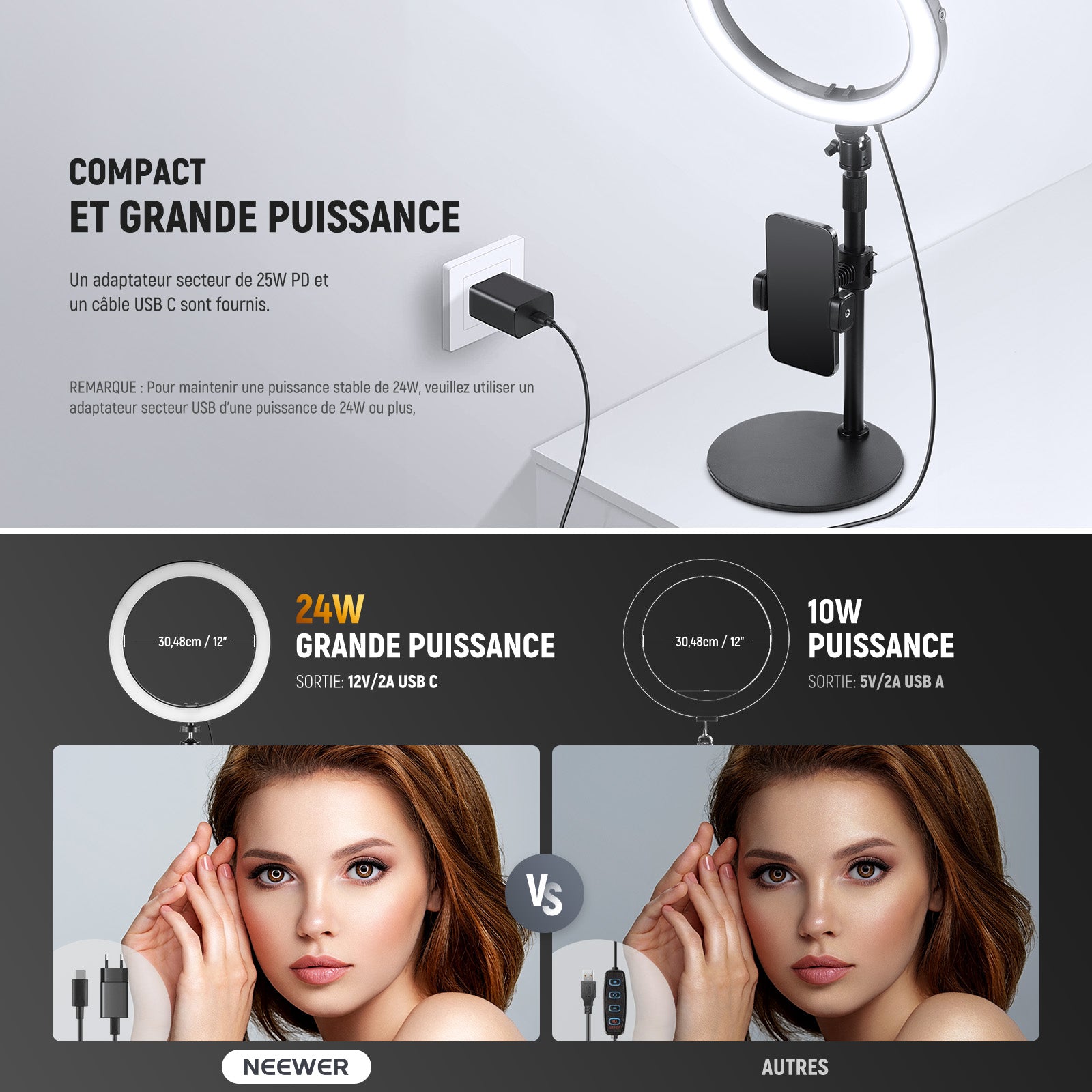 NEEWER Anneau Lumineux de Bureau Haute Puissance avec Support