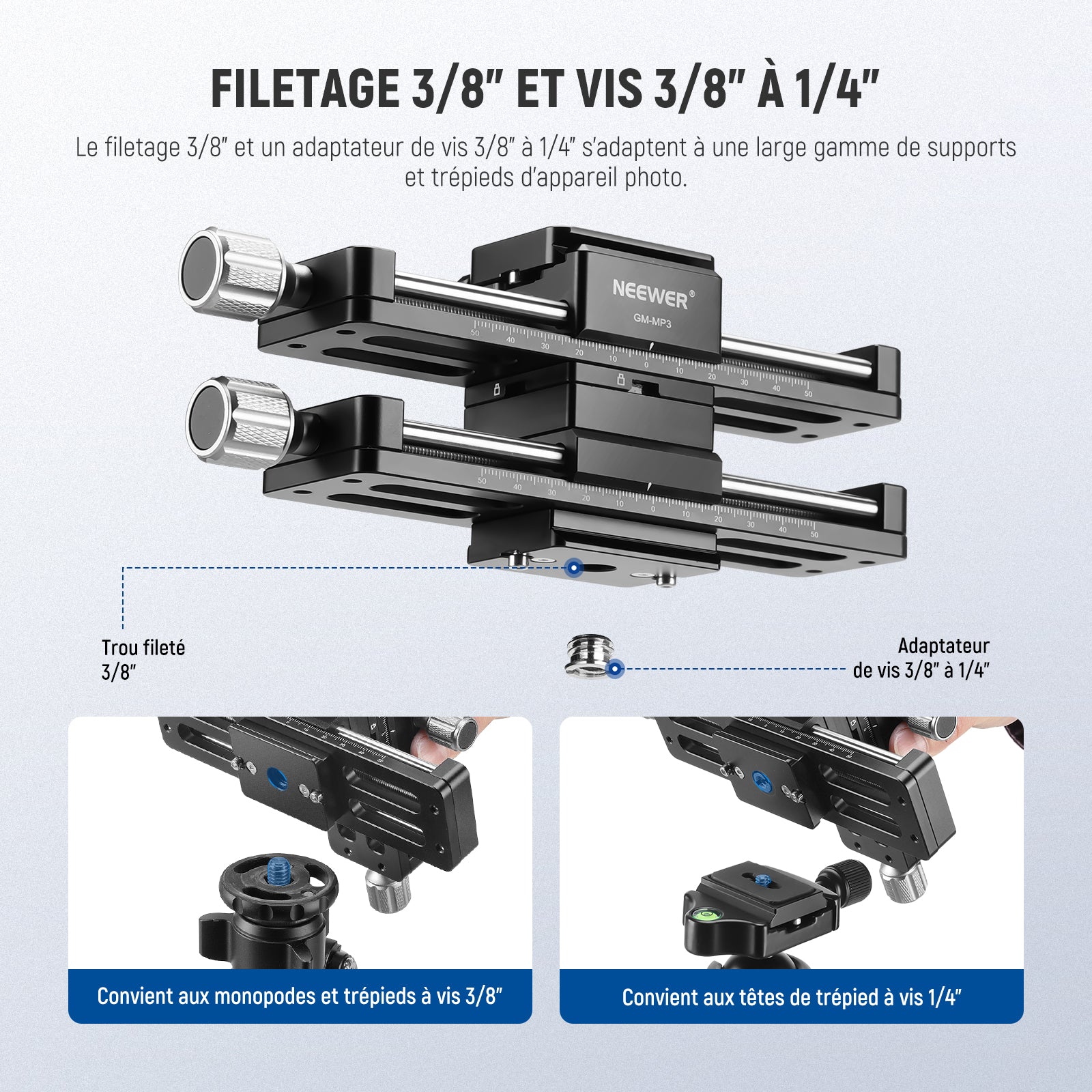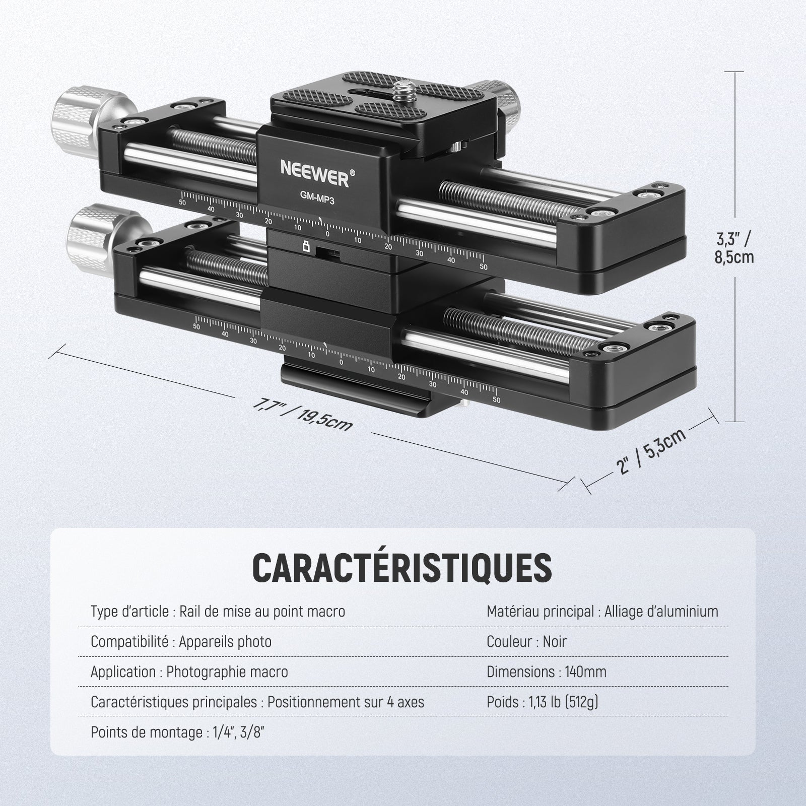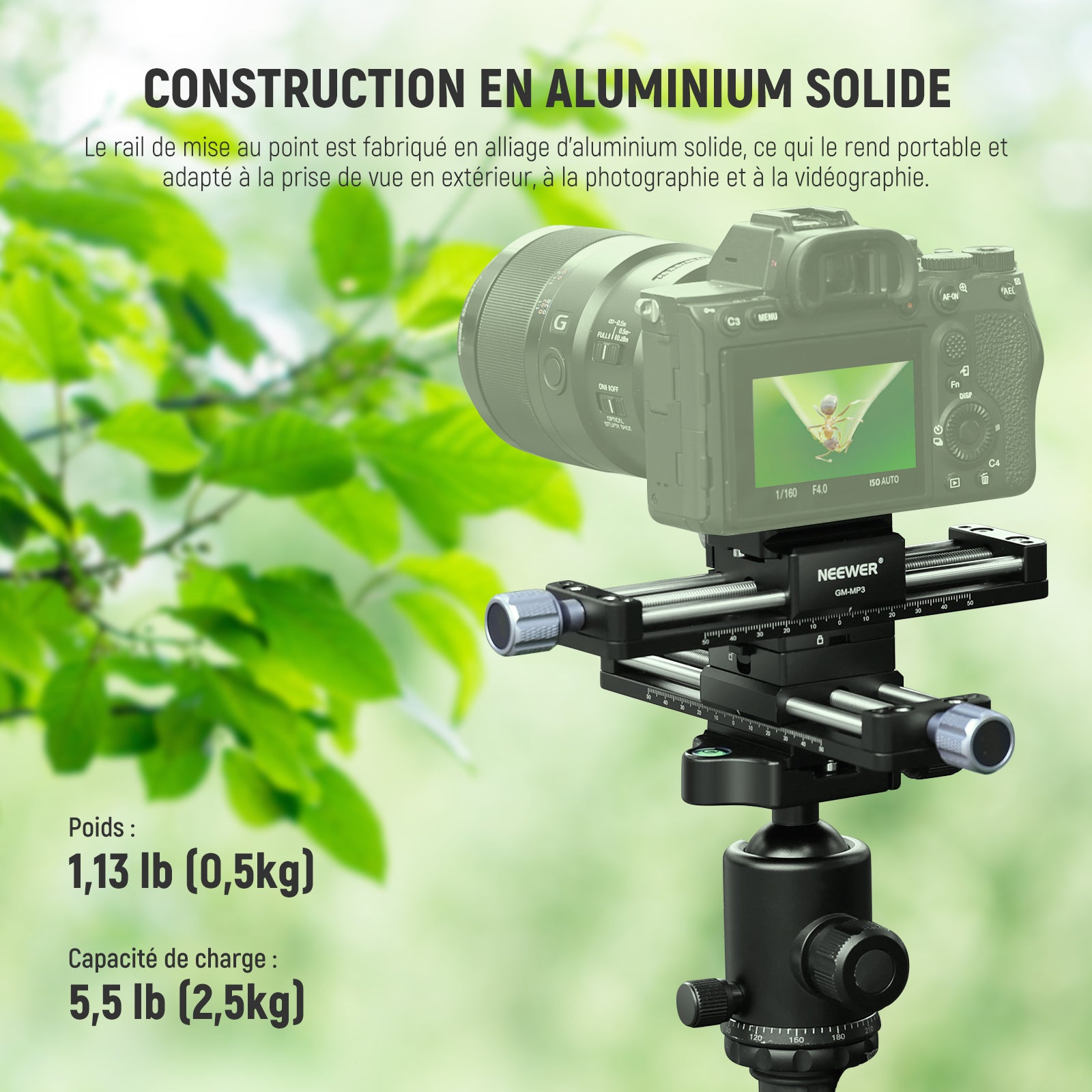 NEEWER GM-MP3 Rail de Mise au Point Macro 4 Axes