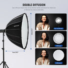 - 【Rappel amical 】Cette grande softbox de 120 cm est conçue pour les studios spacieux. Avant l’achat, veuillez vous assurer que votre espace de prise de vue peut accueillir cette softbox et que ses dimensions sont compatibles avec votre équipement d’éclairage.Si votre espace est limité, les versions portables de 80 cm ou 60 cm peuvent être de meilleures options afin d’éviter tout désagrément et de garantir le bon déroulement de vos prises de vue.