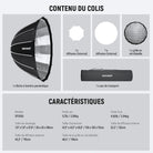 - Poids du Softbox : 2,6 lb / 1,17 kg