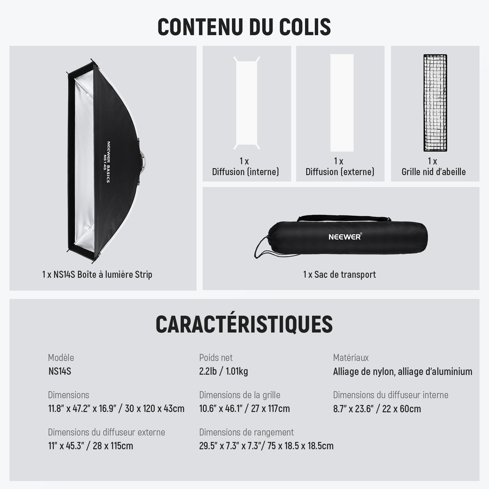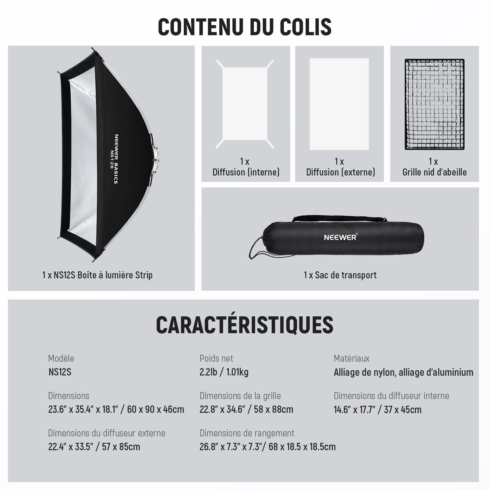 NEEWER BASICS NS12S/NS14S Kit Softbox Rectangulaire