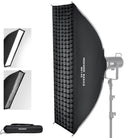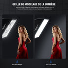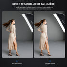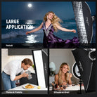 - 【Kit d'Éclairage Softbox Bande】Ce softbox rectangulaire 24"x35"(60x90cm) est dotée d'une doublure argentée brillante, réduisant imperfections et ombres tout en maintenant un indice de rendu des couleurs (IRC) et une température de couleur neutres, avec 2 diffuseurs et une grille en nid d'abeille. Pesant 1,01kg(2,2lb), elle se plie à plat et se range dans son sac à cordon avec grille et diffuseurs pour portrait, séance photo en studio beauté, vidéo de mariage et la photographie.
