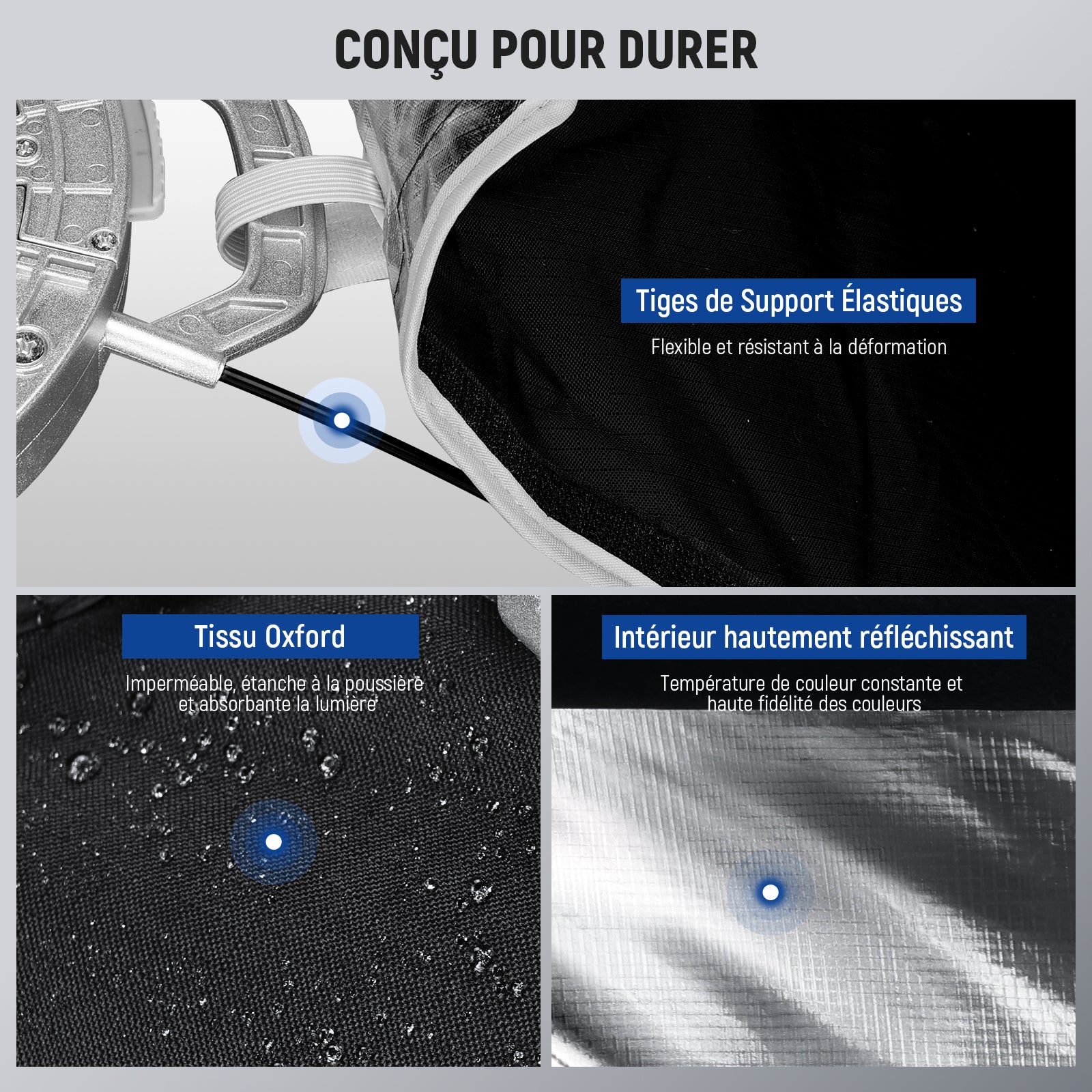 - Matériaux principaux : Tissu Oxford, Alliage d’aluminium
