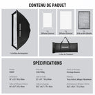 - Type d’article : Boîte à lumière rectangulaire (Strip Softbox)