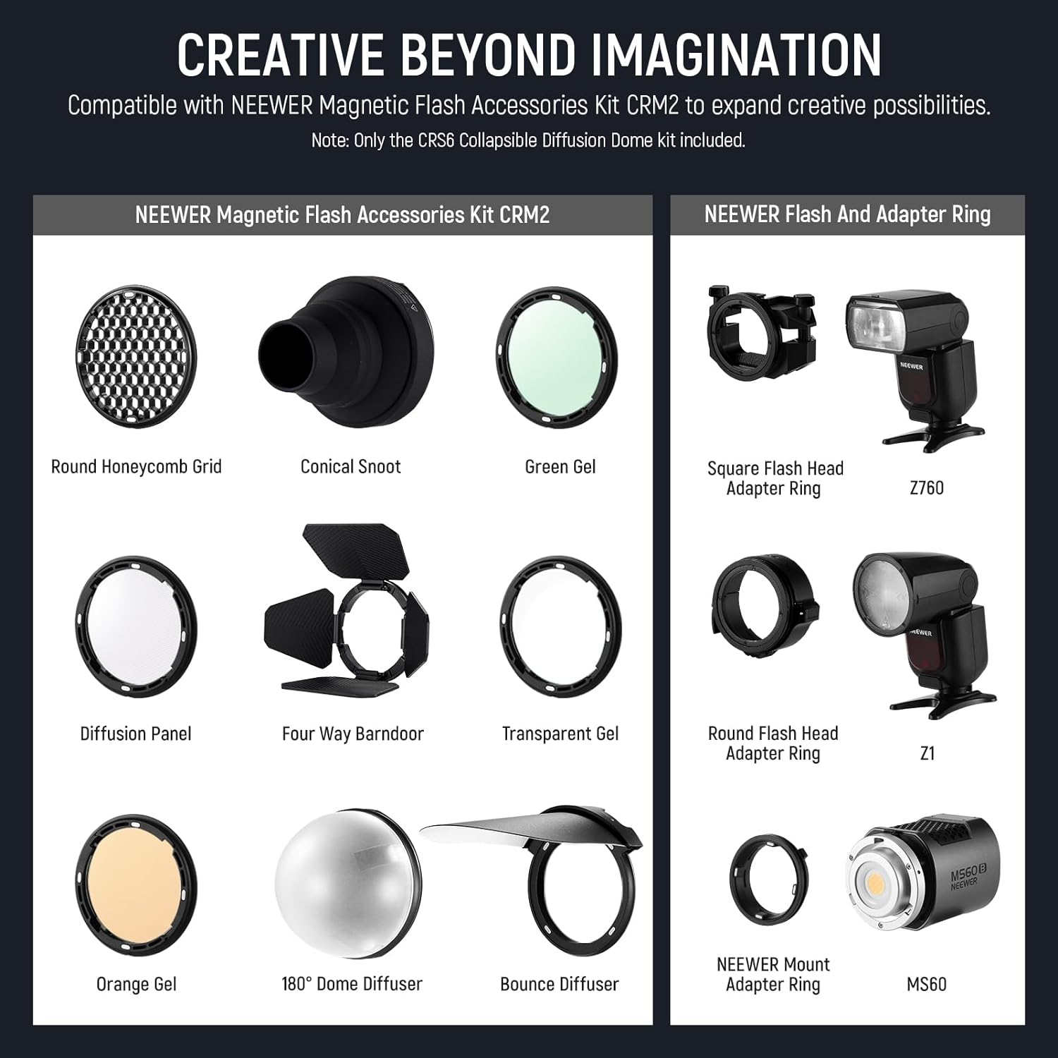NEEWER CRS6 Dôme Diffuseur avec 3 Bagues d'Adaptation