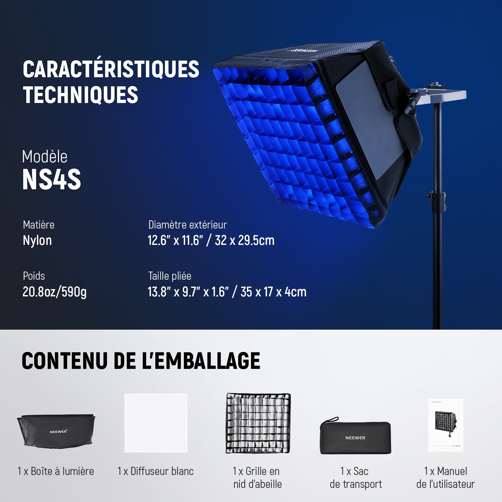 NEEWER NS4S Diffuseur Softbox amélioré pour NL660 RGB660 PRO