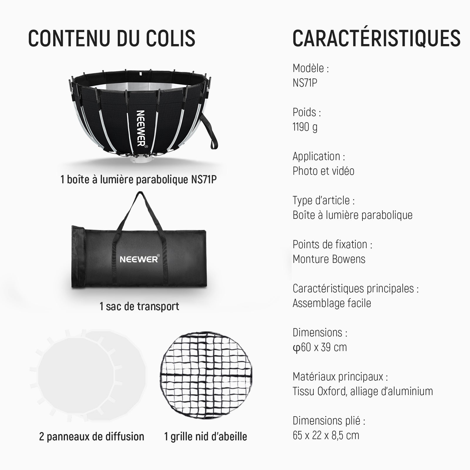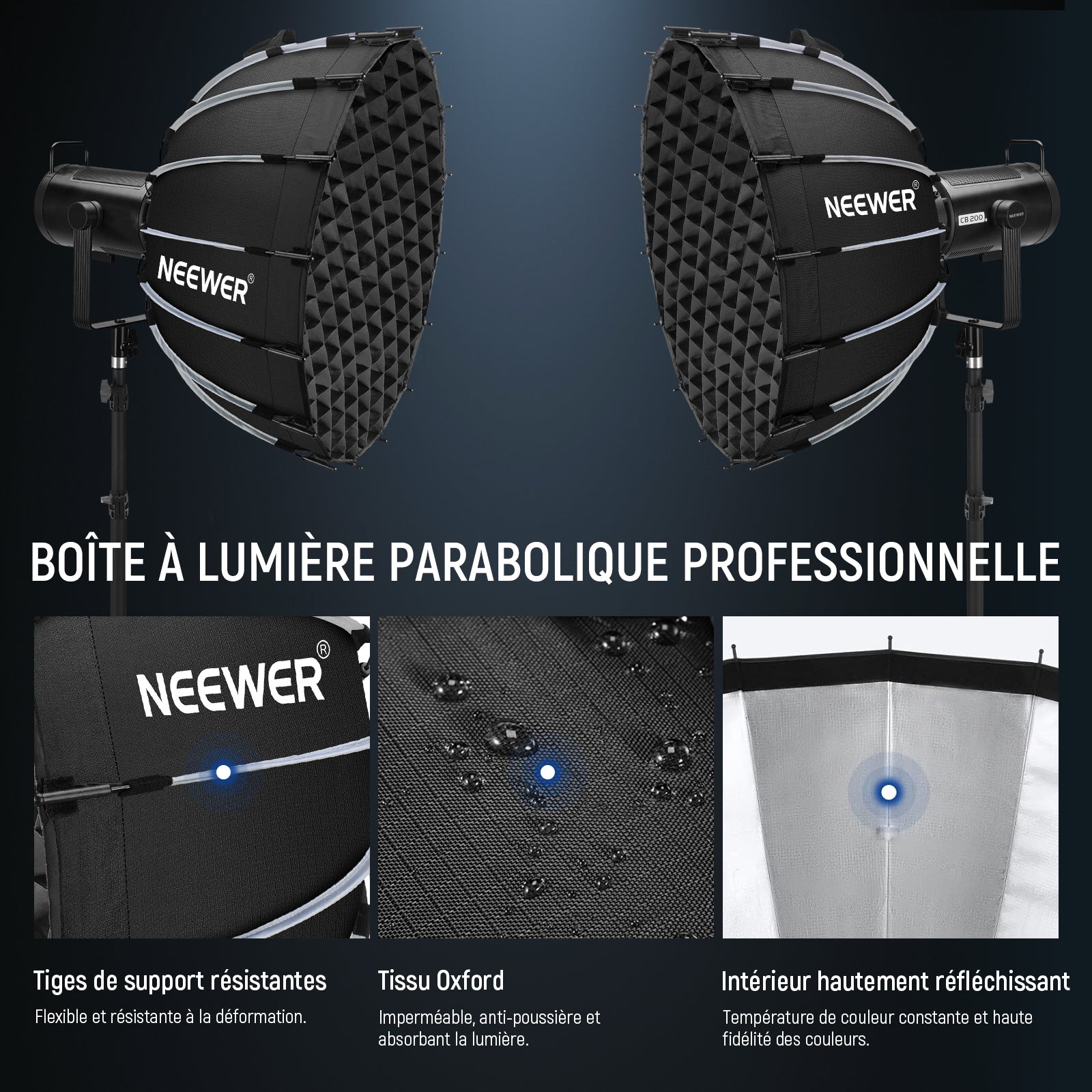 NEEWER Kit de boîte à lumière parabolique