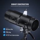 - Advanced Optical Spotlight Snoot- With precise optical aspheric lenses and advanced multicoating technology, this spotlight offers 98% light transmission for boosted brightness and efficient light concentration. Equipped with a 19< projection lens, it casts clear light spots with uniform brightness and sharp edges. When paired with the NEEWER CB300B, it increases illuminance by 6.9x at 1m
