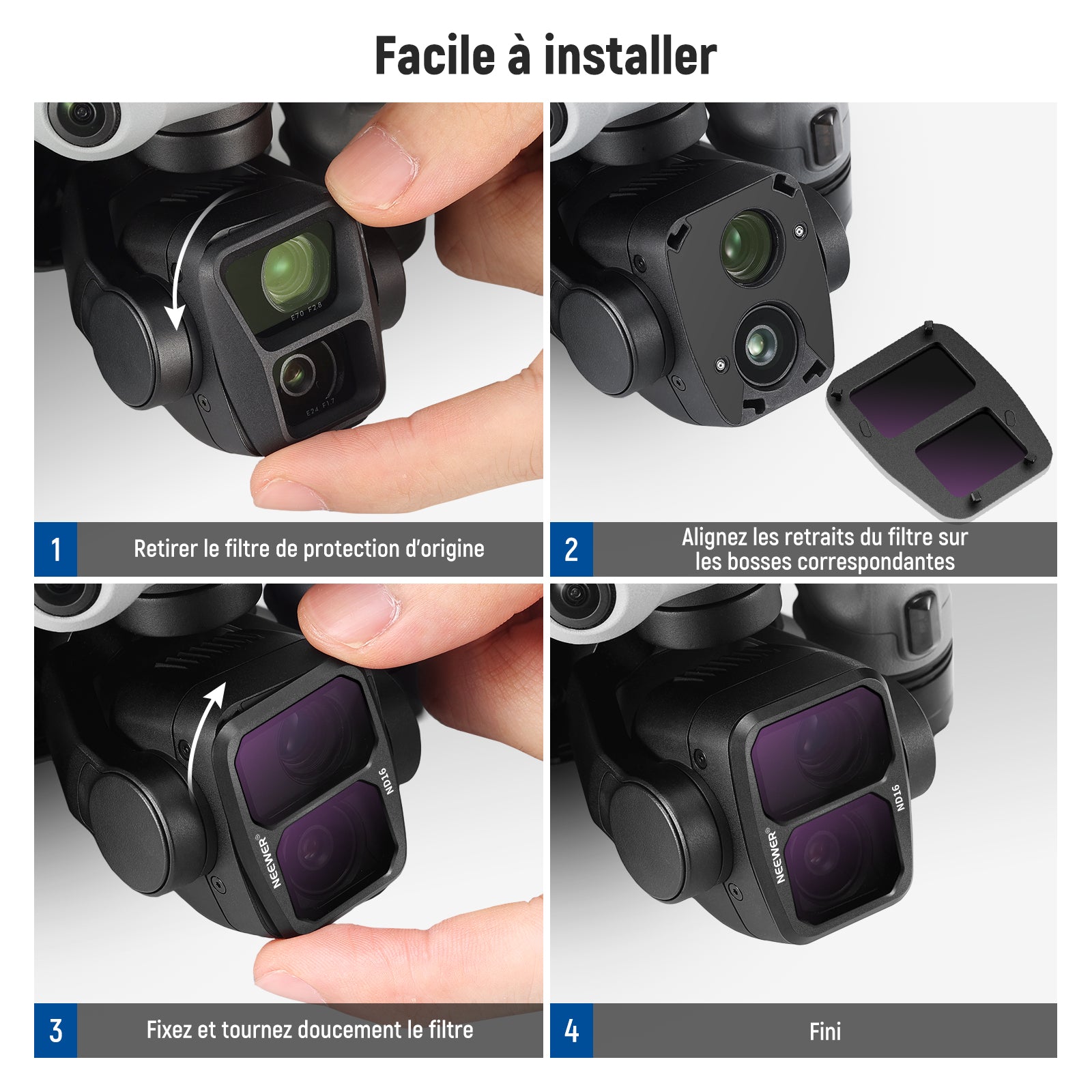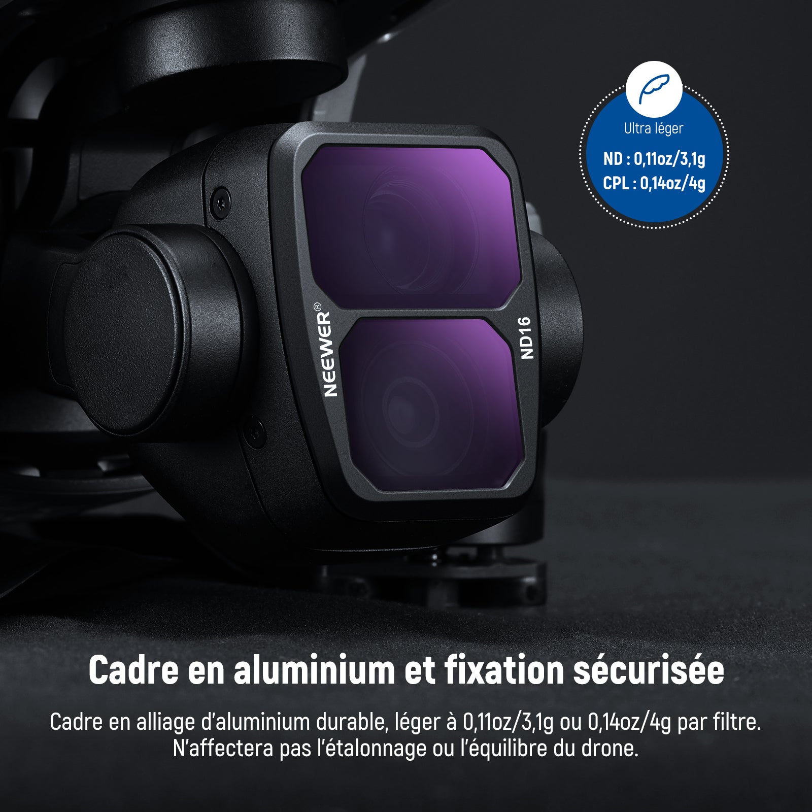 - 【Dédié au drone Air 3】 Présentation du dernier ensemble de filtres ND et CPL indispensable, conçu pour le système de cardan à double caméra grand angle et téléobjectif d'Air 3. C'est un changeur de jeu pour tous les amateurs de drones qui cherchent à affiner les vitesses d'obturation, réduire les reflets , améliorer la couleur et obtenir une exposition parfaite dans différentes conditions météorologiques