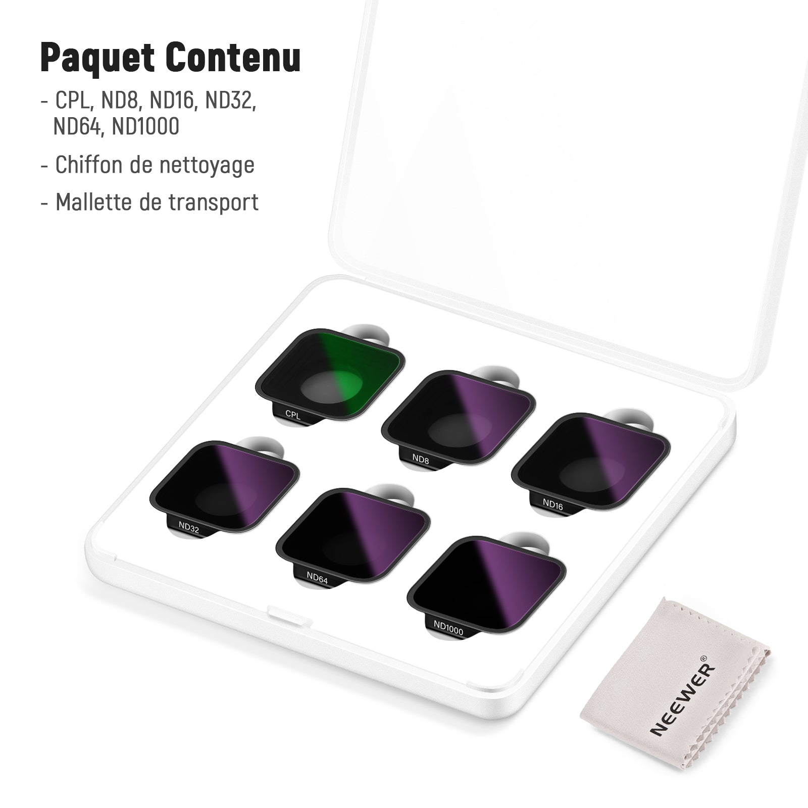 - 1 x Kit de filtres CPL/ND8/ND16/ND32/ND64/ND1000