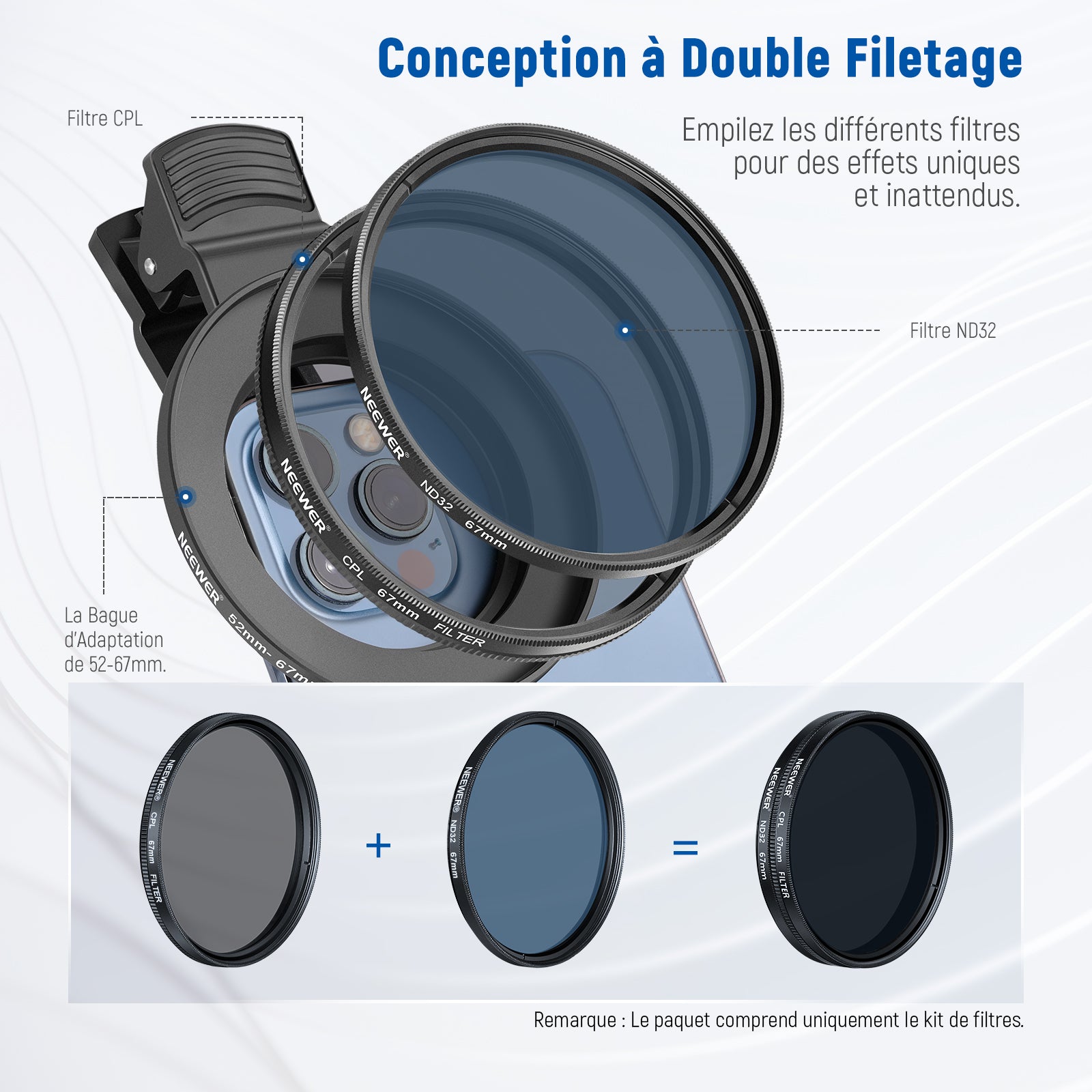 NEEWER Kit de filtres à clipser pour téléphone et appareil photo
