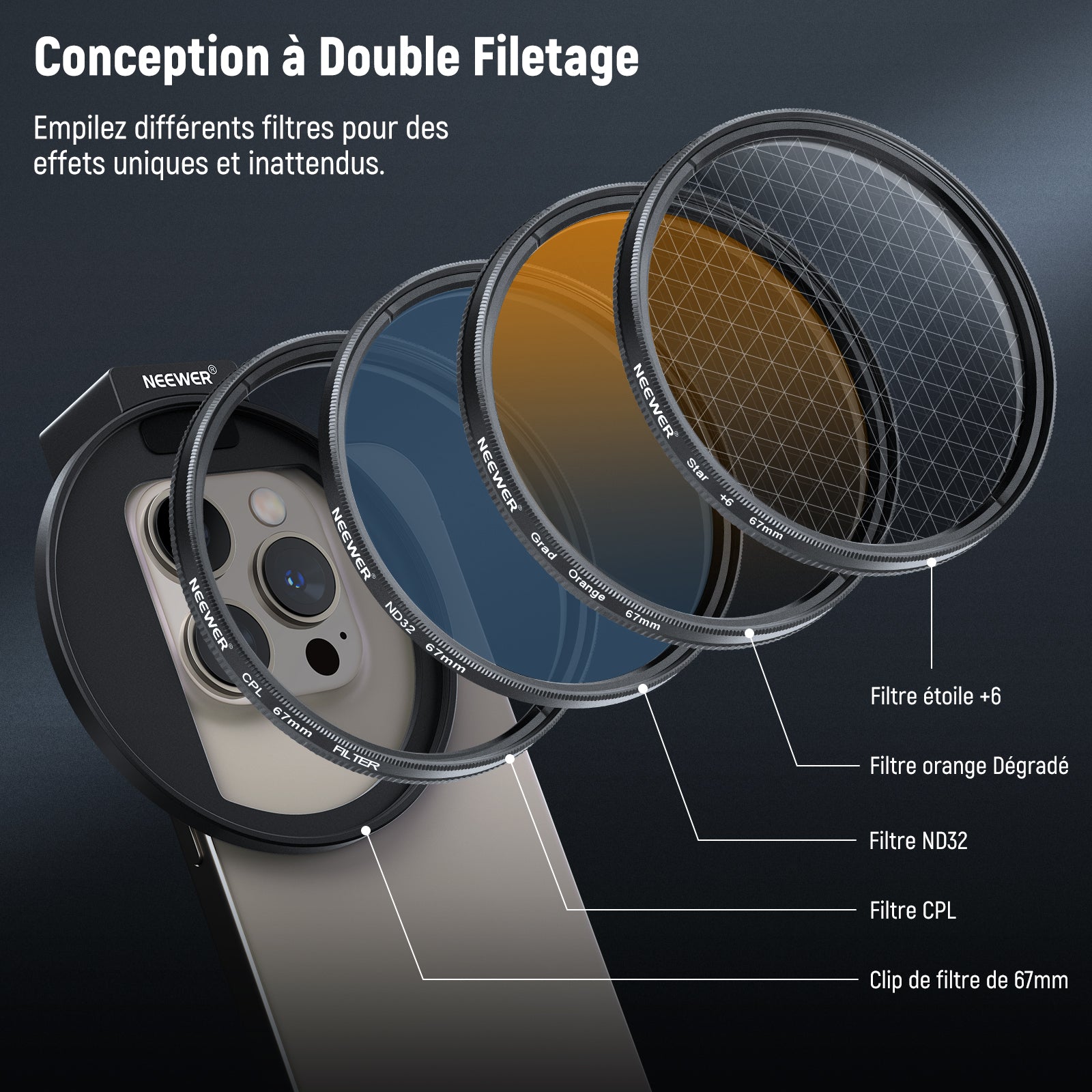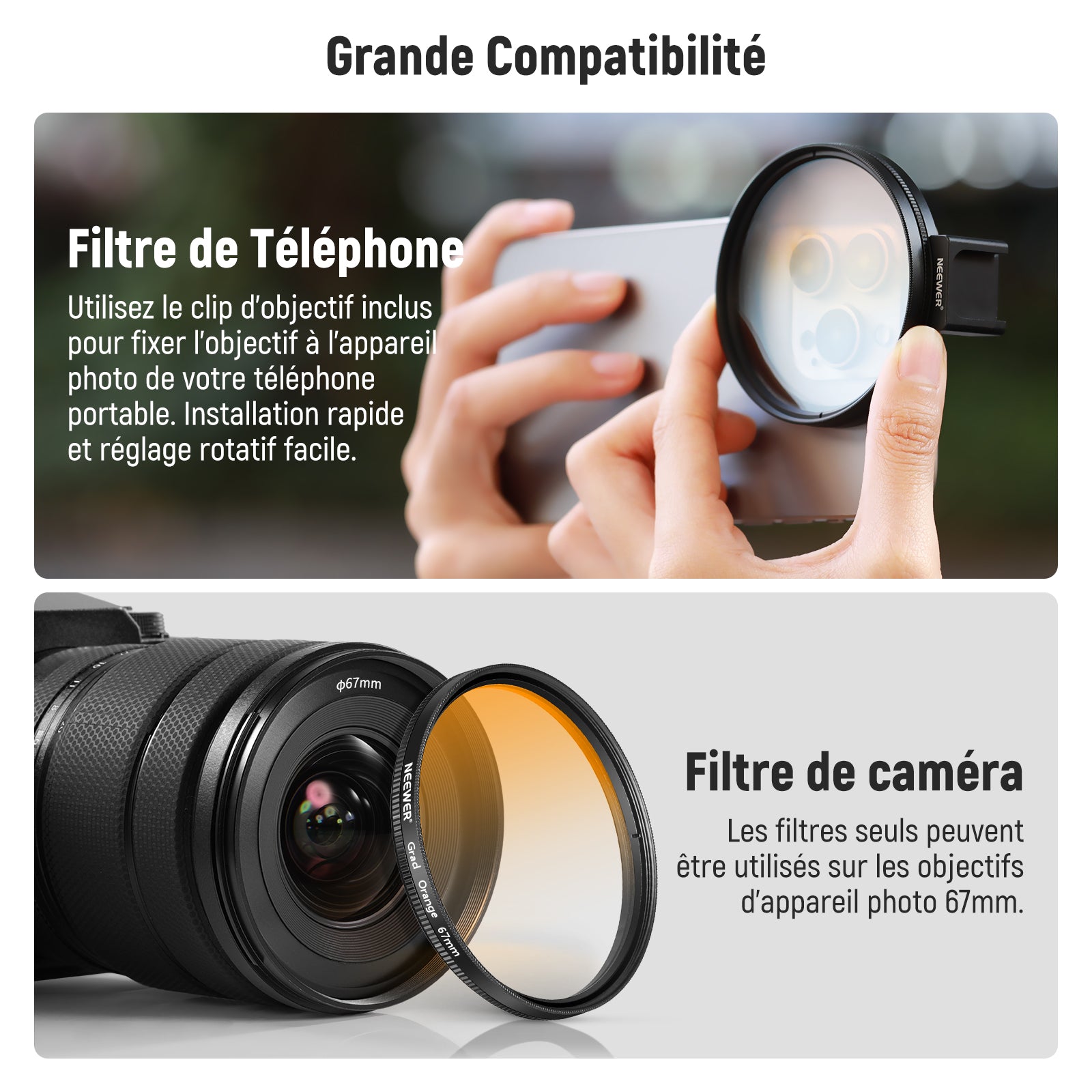 NEEWER 67mm Kit de filtre d'objectif de téléphone à clipser