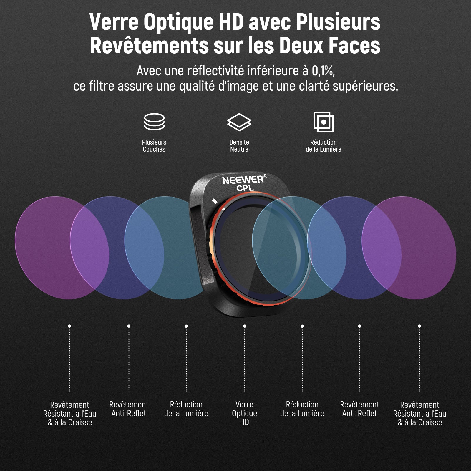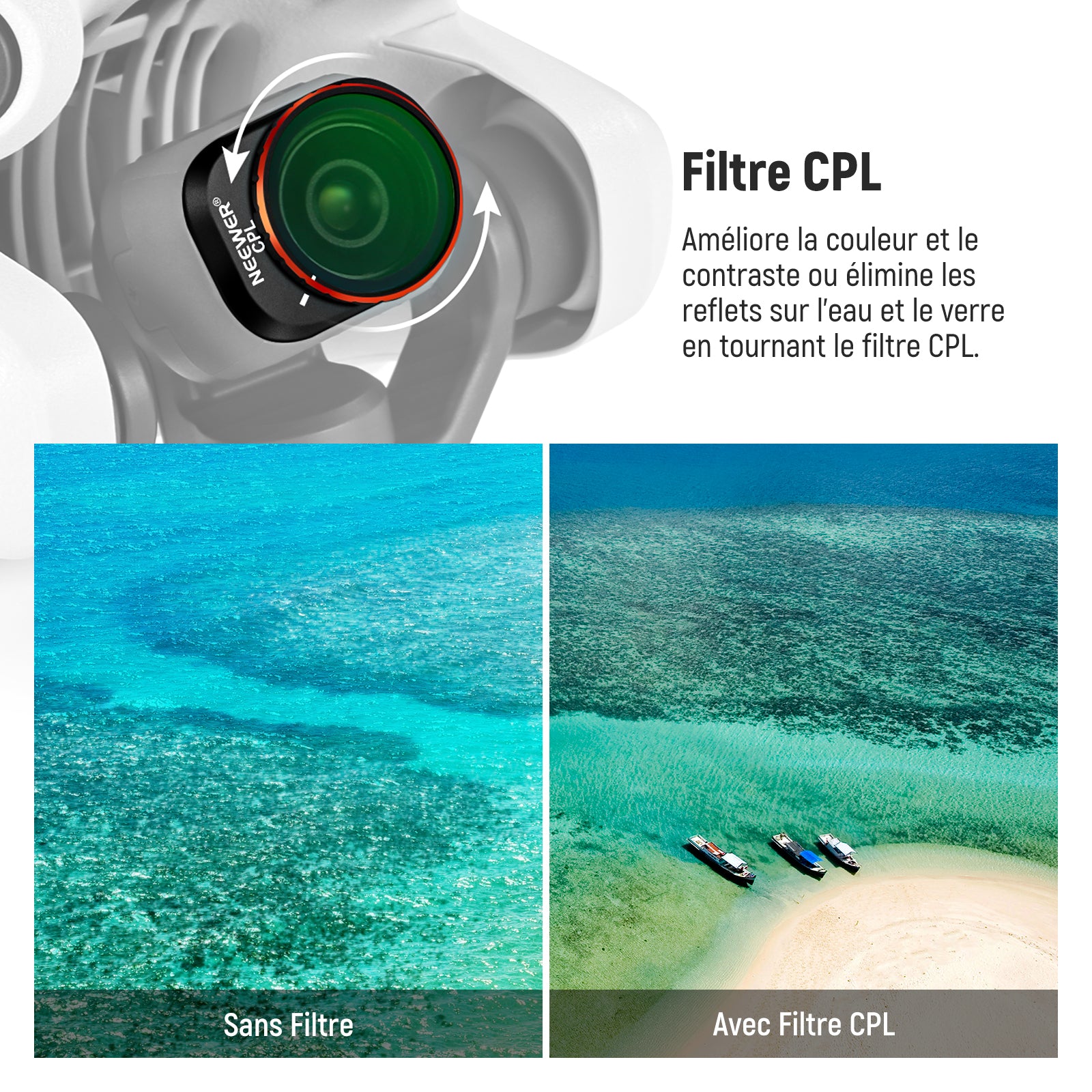 - 【Reproduction de Couleurs Fidèles à la Réalité】 Améliorez la qualité de vos prises de vue grâce à l'excellent rendu des couleurs réalisé par le filtre CPL fourni. Il permet de réduire les éblouissements et les reflets indésirables des surfaces telles que l'eau, le verre et d'autres objets non métalliques, il offre ainsi une précision des couleurs exceptionnelle.