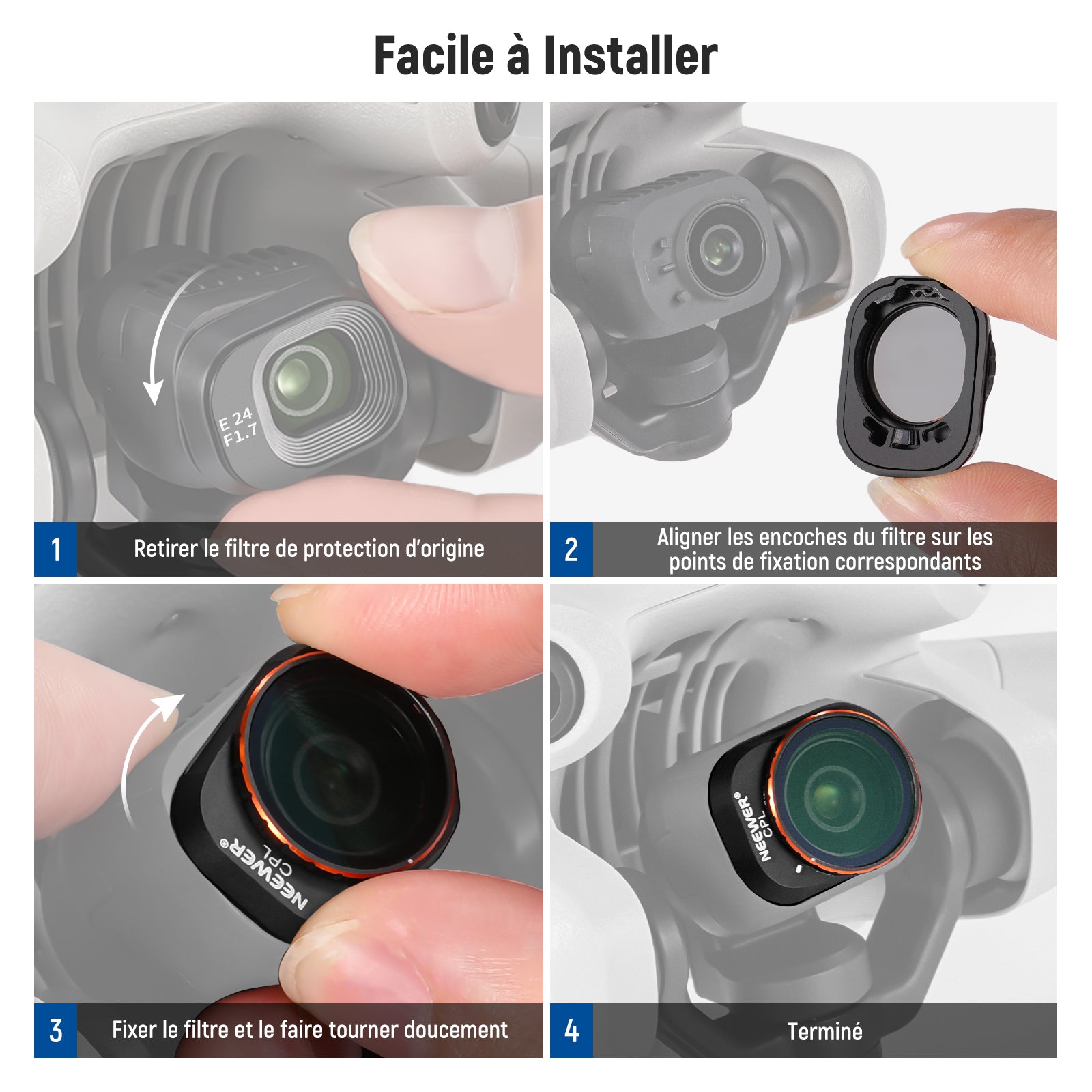 - 【Conçu pour Mini 4 Pro】 Le super kit de filtres HD tout en un est parfaitement compatible avec DJI Mini 4 Pro, exprimez votre créativité photographique de manière originale. Le changement de filtre est rapide pour capturer les bons moments. Il bénéficie d'un verre optique HD de qualité supérieure avec plusieurs revêtements de protection. Il répond à un grand éventail de photos de paysages et de portraits, offrant des images claires et des effets étonnants quelles que soit les conditions météo