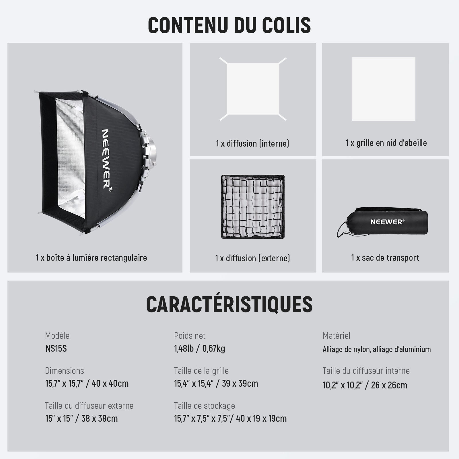 NEEWER NS15S Boîte à Lumière Carrée 40 x 40 cm