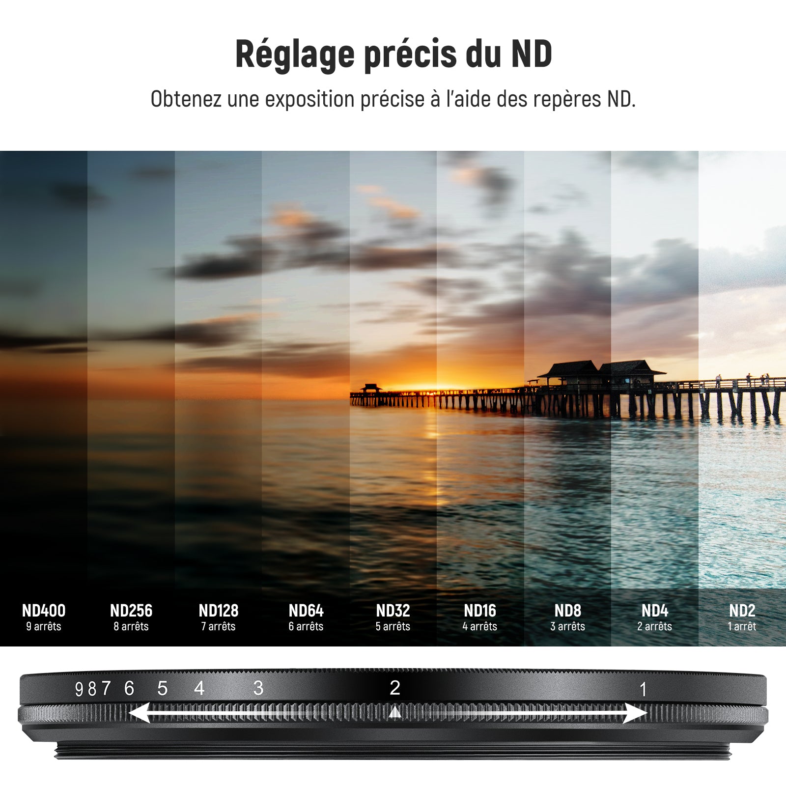 - 【Réglage précis de la valeur ND】 Des marquages précis vous permettent d'atteindre les valeurs de densité neutre souhaitées sans effort et avec précision grâce à la rotation