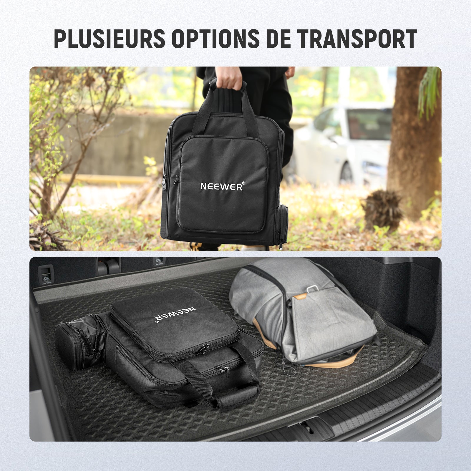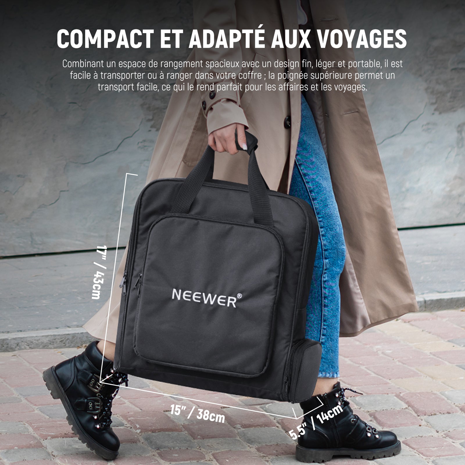 - Compact et facile à transporter : mesurant 43 x 38 x 14 cm, le sac de transport combine un rangement spacieux avec un design fin, léger et portable, facile à transporter ou à glisser dans votre coffre. La poignée ergonomique et antidérapante assure un transport confortable, ce qui le rend parfait pour les voyageurs fréquents