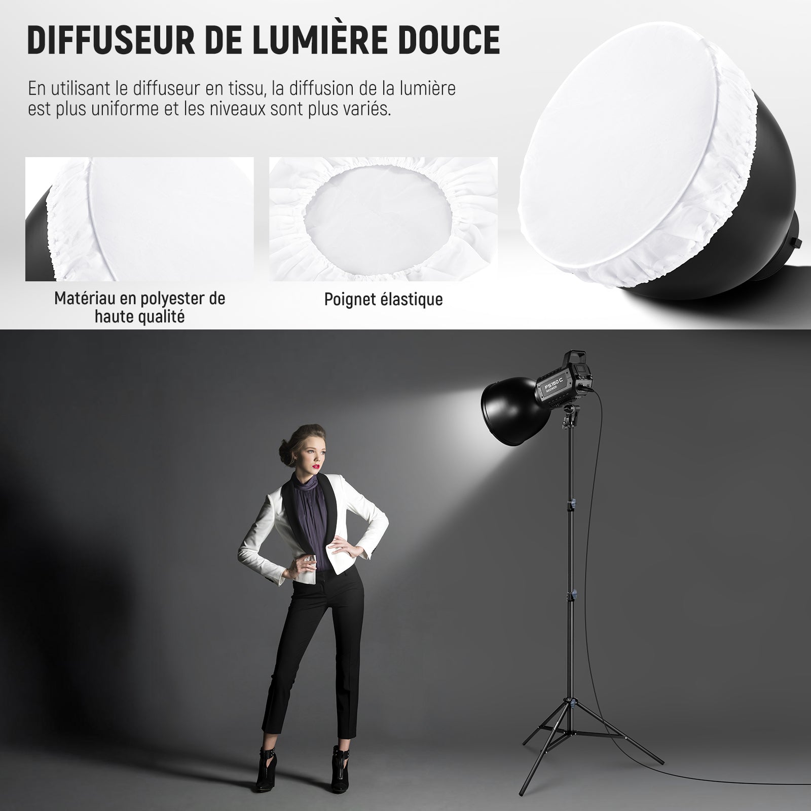 - 【Housse en tissu diffuseur élastique】 Fabriqué à partir de tissu polyester de haute qualité, ce tissu doux diffuseur blanc diffuse efficacement la lumière, adoucit les ombres dures et réduit les reflets pour une répartition de la lumière fluide, donnant à vos prises de vue un aspect doux et naturel. Parfait pour la photographie de portrait et d'autres applications nécessitant un éclairage doux et flatteur. La housse est dotée d'un élastique, facilitant l'application et le retrait