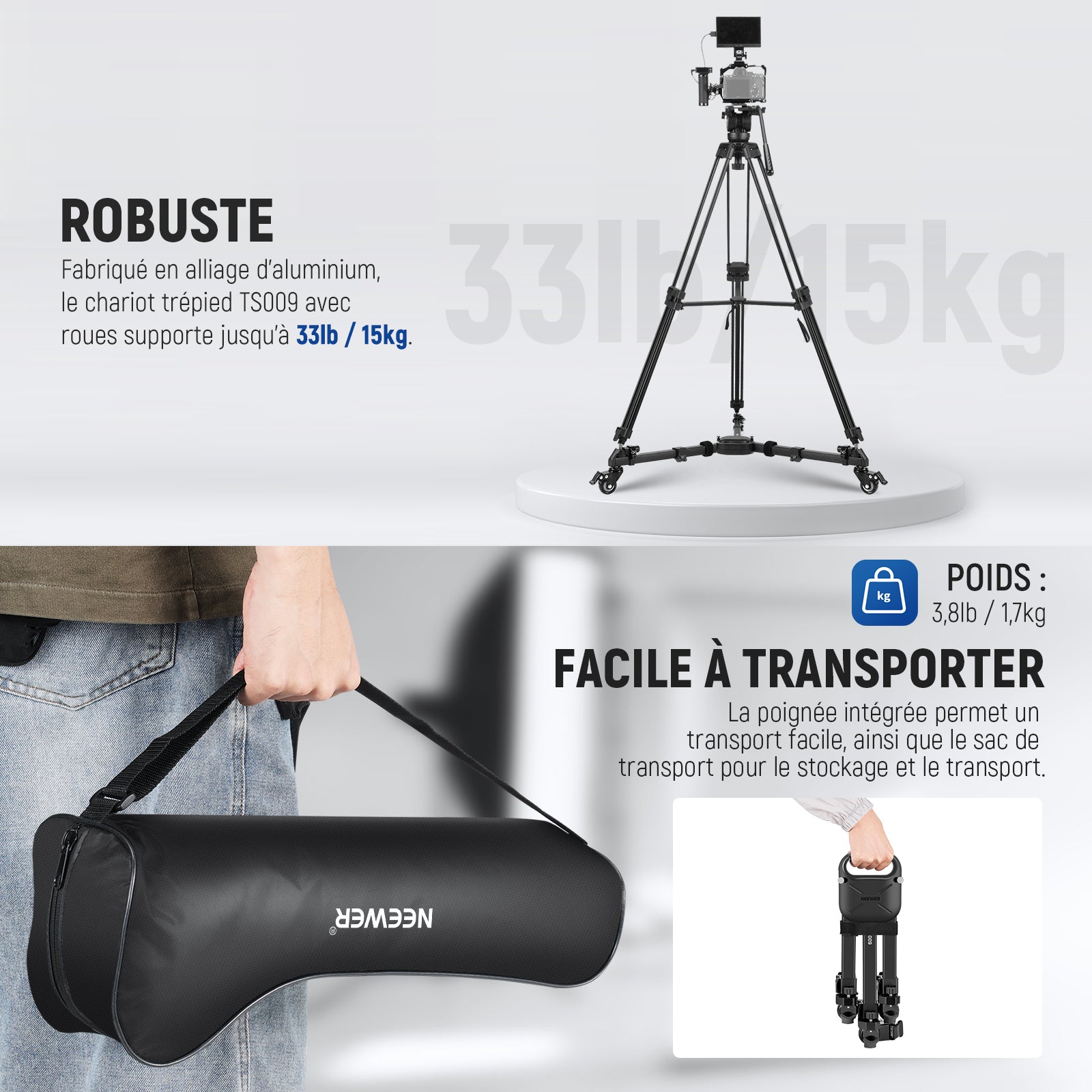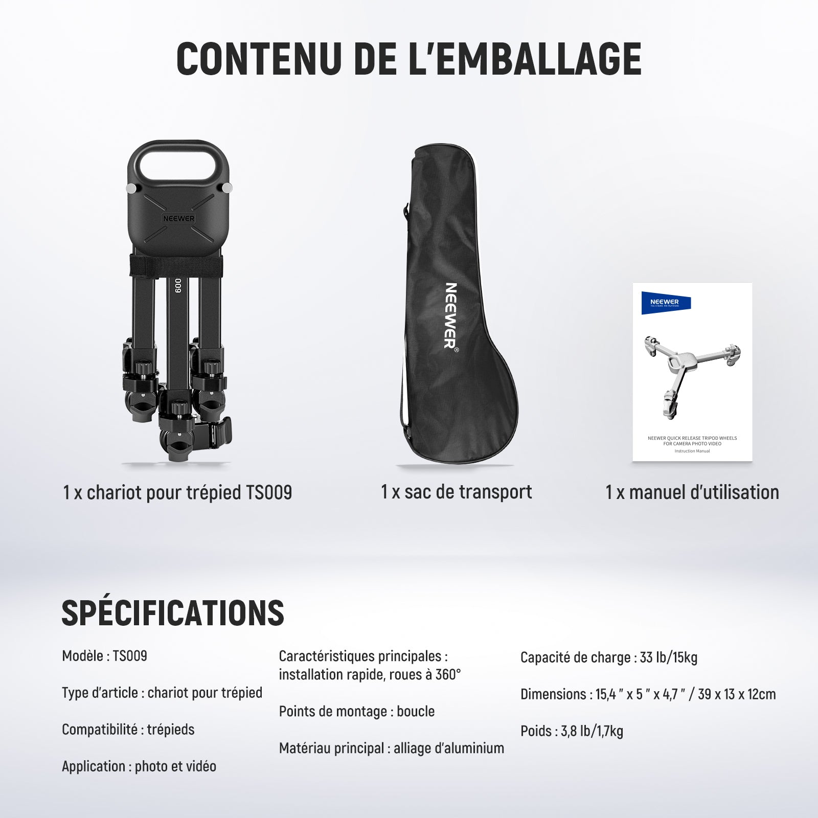 - 1 x TS009 Dolly pour trépied