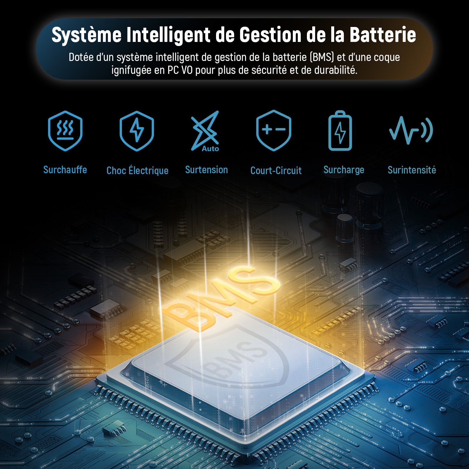- 【Système de Gestion de la Batterie Intelligent】 Cette batterie V Mount PS099E est dotée d'un système de gestion de batterie intelligent (BMS) qui protège automatiquement contre les courts-circuits, les surtensions, les surintensités, les surcharges et les décharges excessives. Il envoie des alertes en cas de surcharge, de surintensité, de surtension, de surchauffe et de décharge trop importante. La coque ignifugée en PC V0 améliore la sécurité et la durabilité