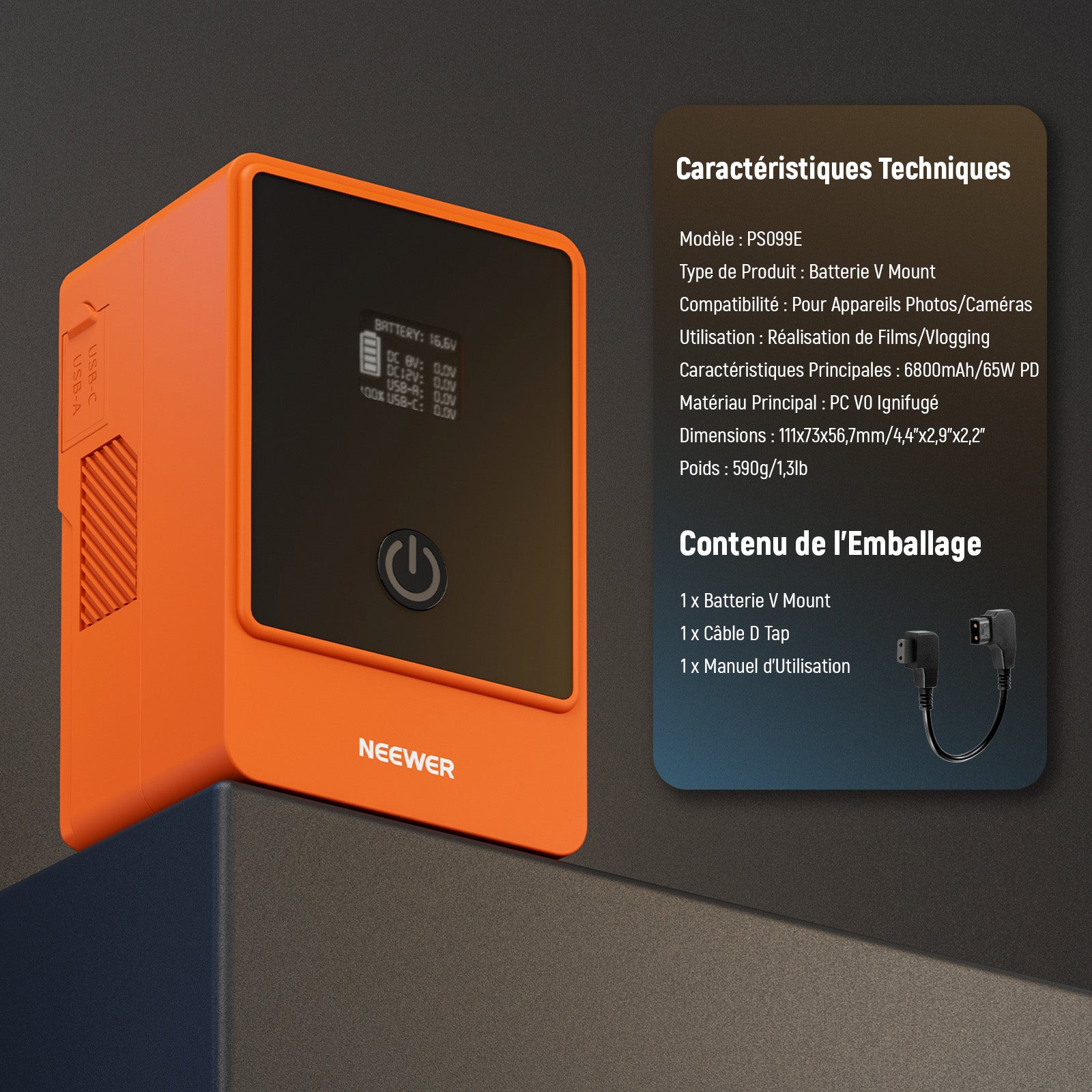 NEEWER PS099E Mini Batterie V Mount 6800mAh 99Wh 14,5V (Orange/Vert)