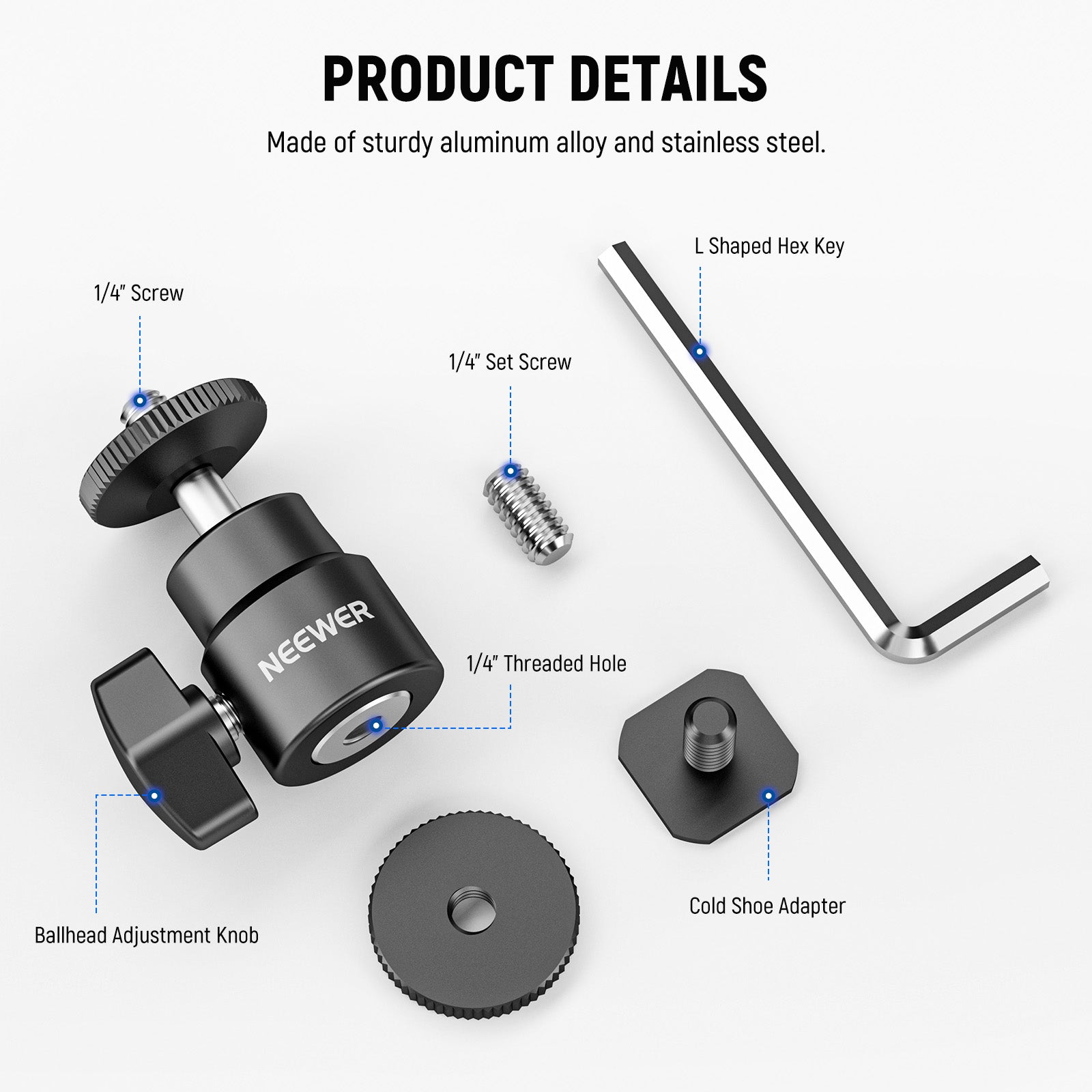 - Contenu du paquet- Pack de 2 mini rotules à bille Neewer, deux clés hexagonales, deux vis 1/4".