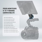• 【Vis de montage universelle 1/4"】 La vis de montage 1/4" s'adapte à tous les moniteurs de terrain 5" ~ 7" avec le filetage correspondant. Utilisez la vis à serrage manuel pour un montage pratique et la clé hexagonale en forme de L incluse pour resserrer la vis à l'aide des fentes.